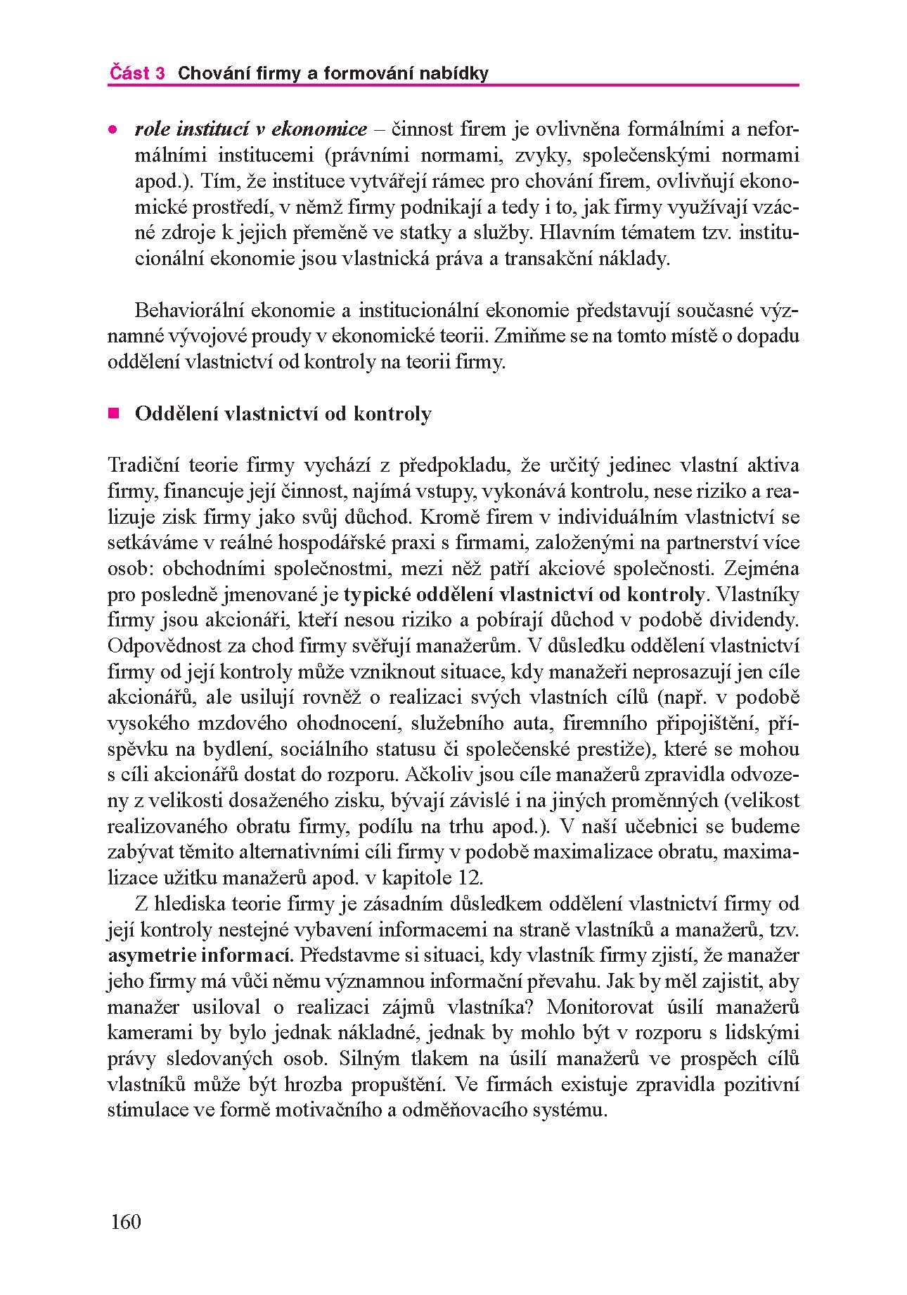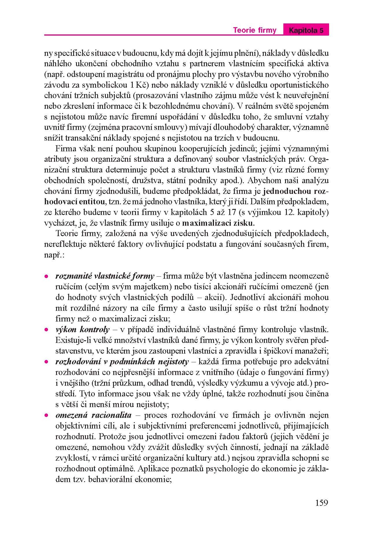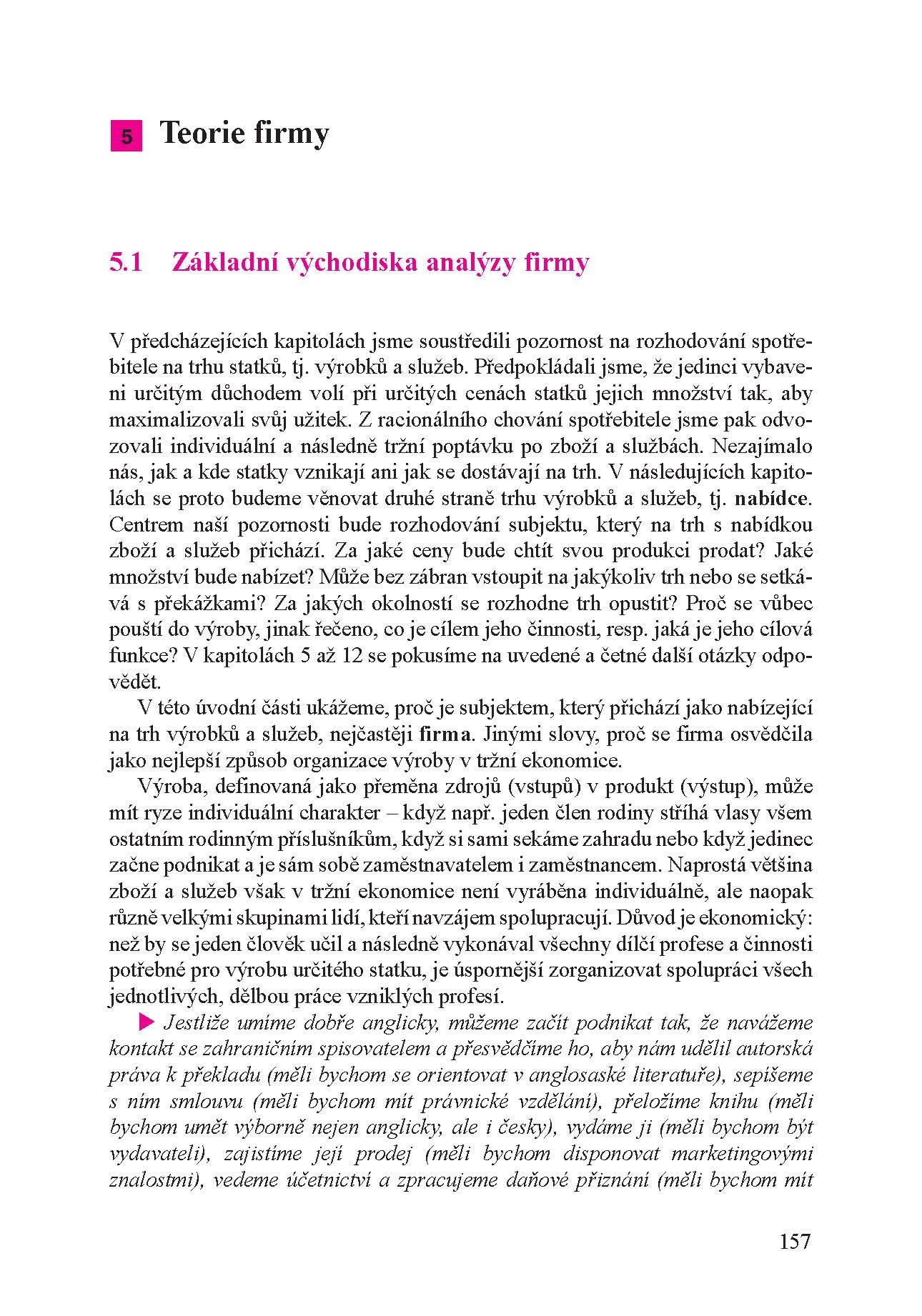 V pořadí již šesté výrazně aktualizované a doplněné vydání první původní české učebnice mikroekonomie předních pedagogů VŠE v Praze je zaměřena na základní mikroekonomická témata, jako jsou rozhodování spotřebitele jakožto základu pro odvození poptávky, teorie firmy či chování podnikatelských subjektů v různých tržních strukturách. Výklad trhu výrobních faktorů pak zahrnuje jak obecné principy formování cen výrobních faktorů, tak zvláštnosti trhu práce a kapitálu. Na trhu práce je pozornost věnována zvlášť poptávce a nabídce a je odlišena dokonalá a nedokonalá konkurence. Závěrečné kapitoly zohledňují vzájemnou propojenost jednotlivých trhů a také limity trhu a zásahy státu do ekonomiky z mikroekonomického hlediska. Učebnice je určena zejména pro studenty magisterského studia, ale i pro čtenáře bez hlubších předchozích znalostí ekonomické teorie se zájmem o výše uvedená témata.