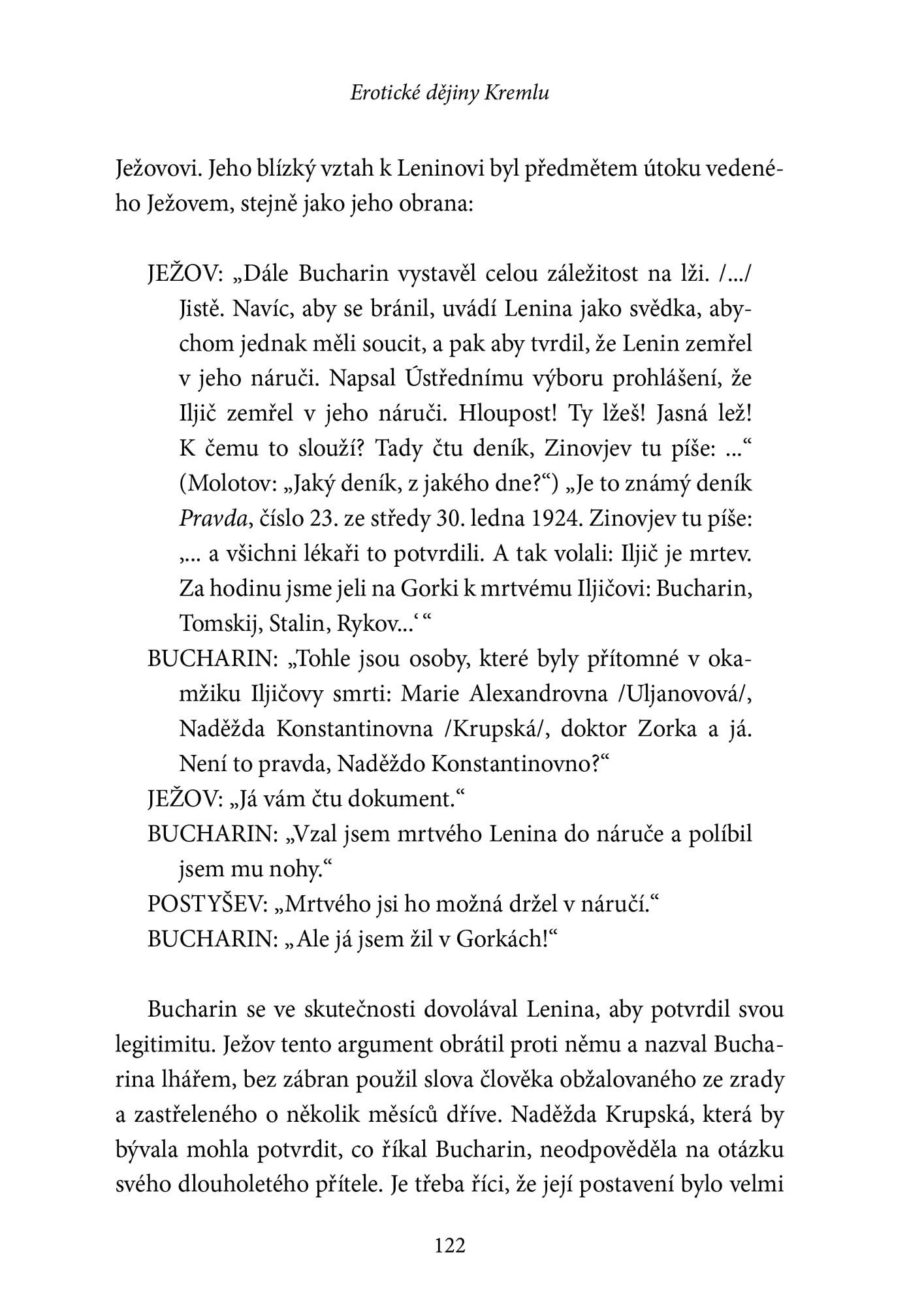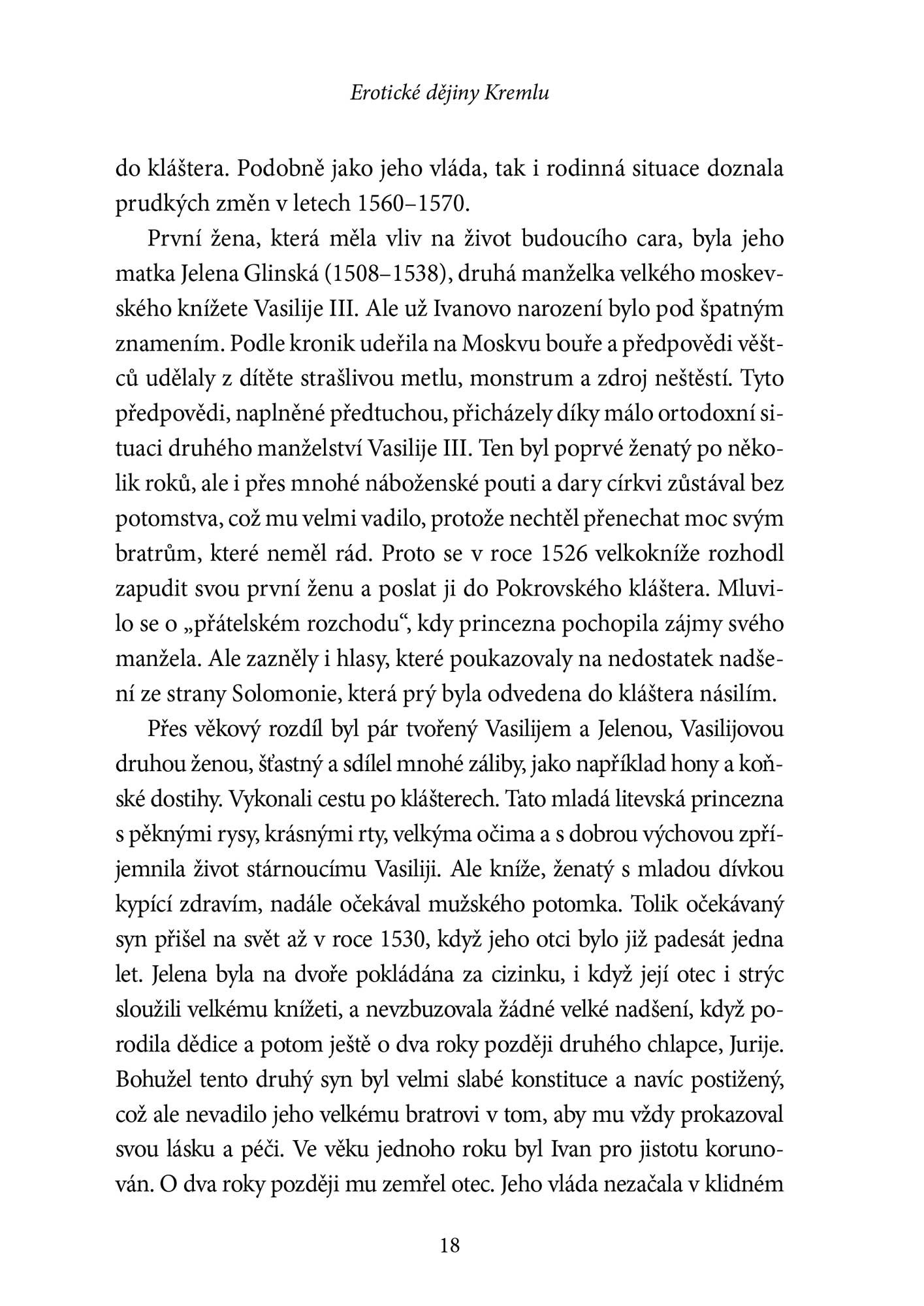 Erotické dějiny Kremlu nabízejí putování do nitra jednoho z nejtajemnějších míst moci na světě, kde se po staletí setkává politika s intimitou. Jejich cesty se kříží a vzájemně obohacují. Provází nás od šesti žen Ivana Hrozného až k prvním dámám, jakými byly Nina Chruščovová, Viktorie Brežněvová a Raisa Gorbačovová. Samostatnou kapitolou je „rudý Kreml“ s požitkářem Leninem, ohnivou Alexandrou Kollontajovou, velkou vyznavačkou volné lásky, a se Stalinem, který se snažil, aby ženy zmizely. Kniha přináší zástup osobností jak z ruských románů, velké milostné příběhy i příběhy nenávisti, zachycuje nejrůznější manželské vztahy, mravy skrývané i okázale předváděné, úskoky i boje na život a na smrt.