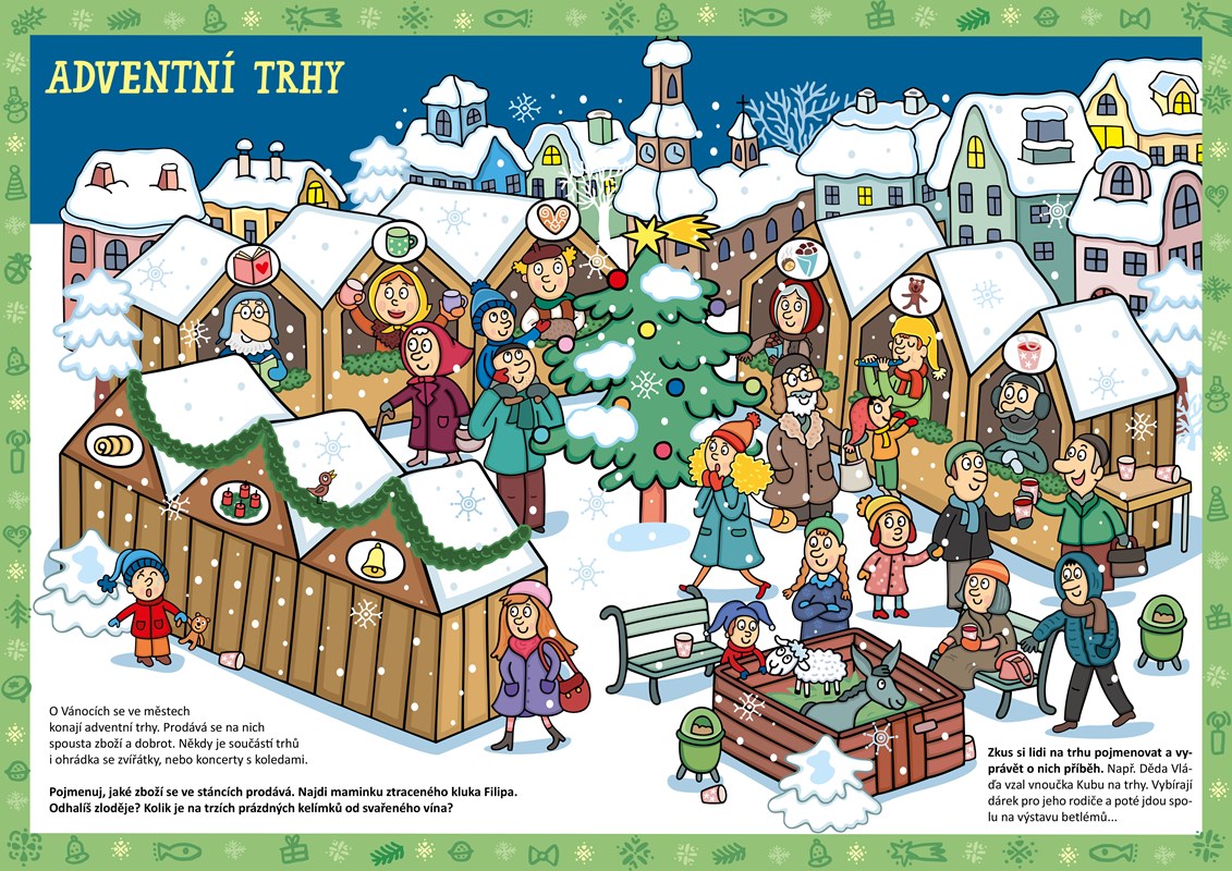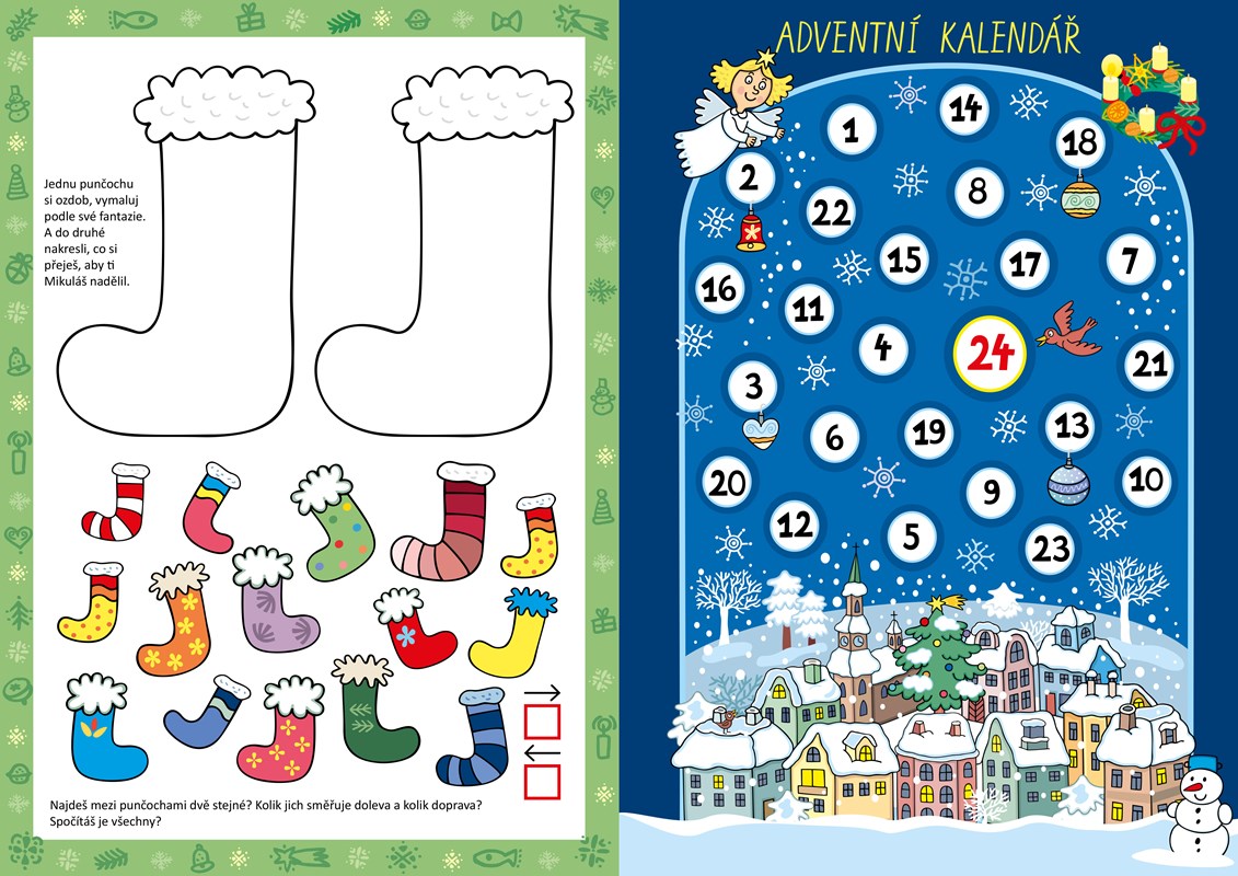 Aby to čekání nebylo moc dlouhé, aby bylo intenzivní a zábavné, připravili jsme pro vaše děti a vnoučata knížku se spoustou hravých aktivit a úkolů. Ty doprovází návody na výtvarné tvoření a hry, voňavé recepty a jednoduché povídání o vánočních zvycích.