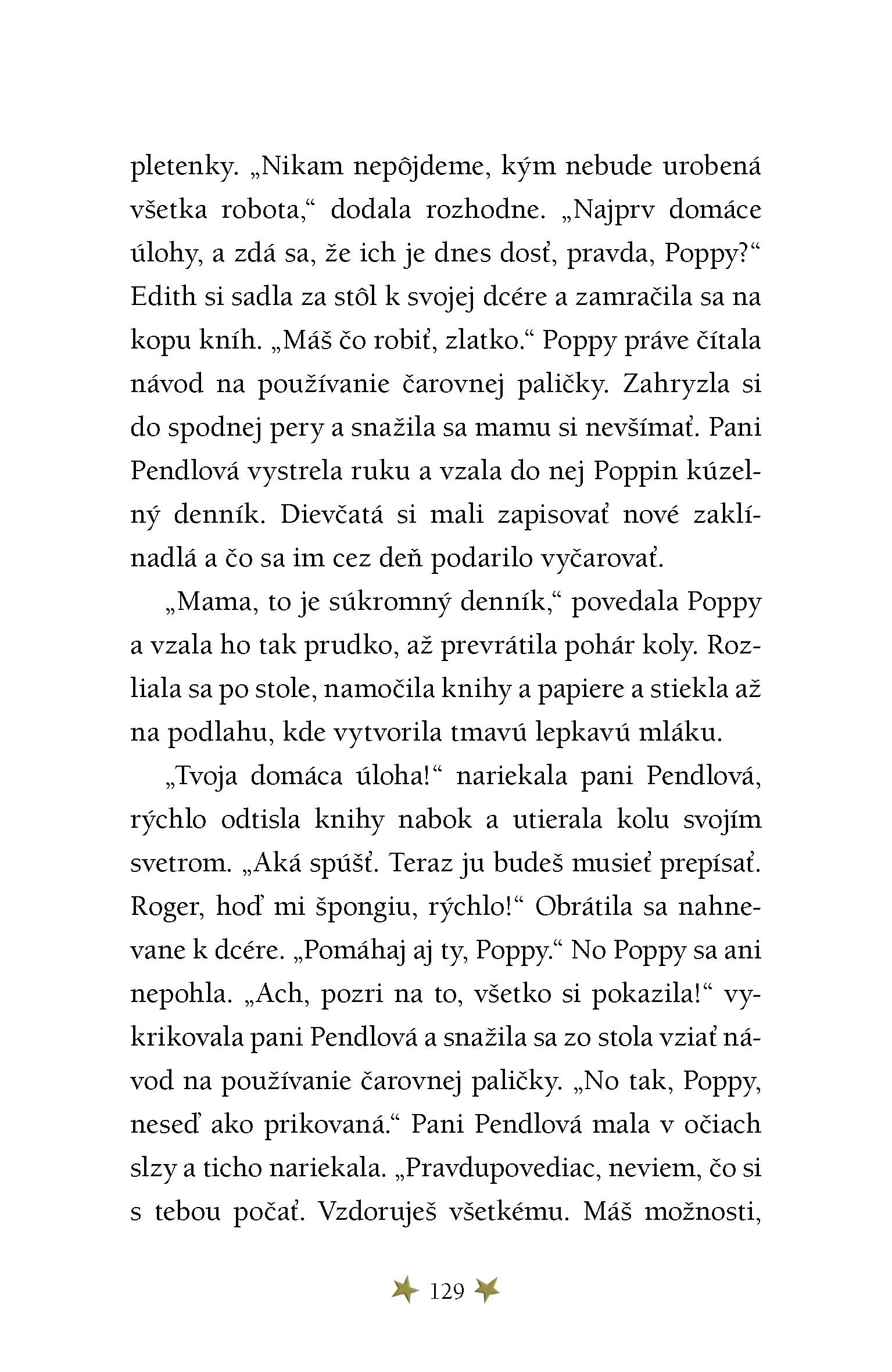 Ako však Poppy rastie, nie je vôbec nadšená zo svojich čarodejníckych schopností. Hoci zdedila výnimočný dar mágie po svojej praprastarej mame Mabel a chodí do exkluzívnej čarodejníckej školy, ona nadovšetko túži stať sa pekárkou. Jej vášňou je piecť chutné citrónové zákusky, maslovo-mandľové koláčiky, čokoládové torty a chrumkavé karamelové sušienky. To ju robí šťastnou. Poppy Pendlová nemá na výber, musí vziať veci do vlastných rúk.