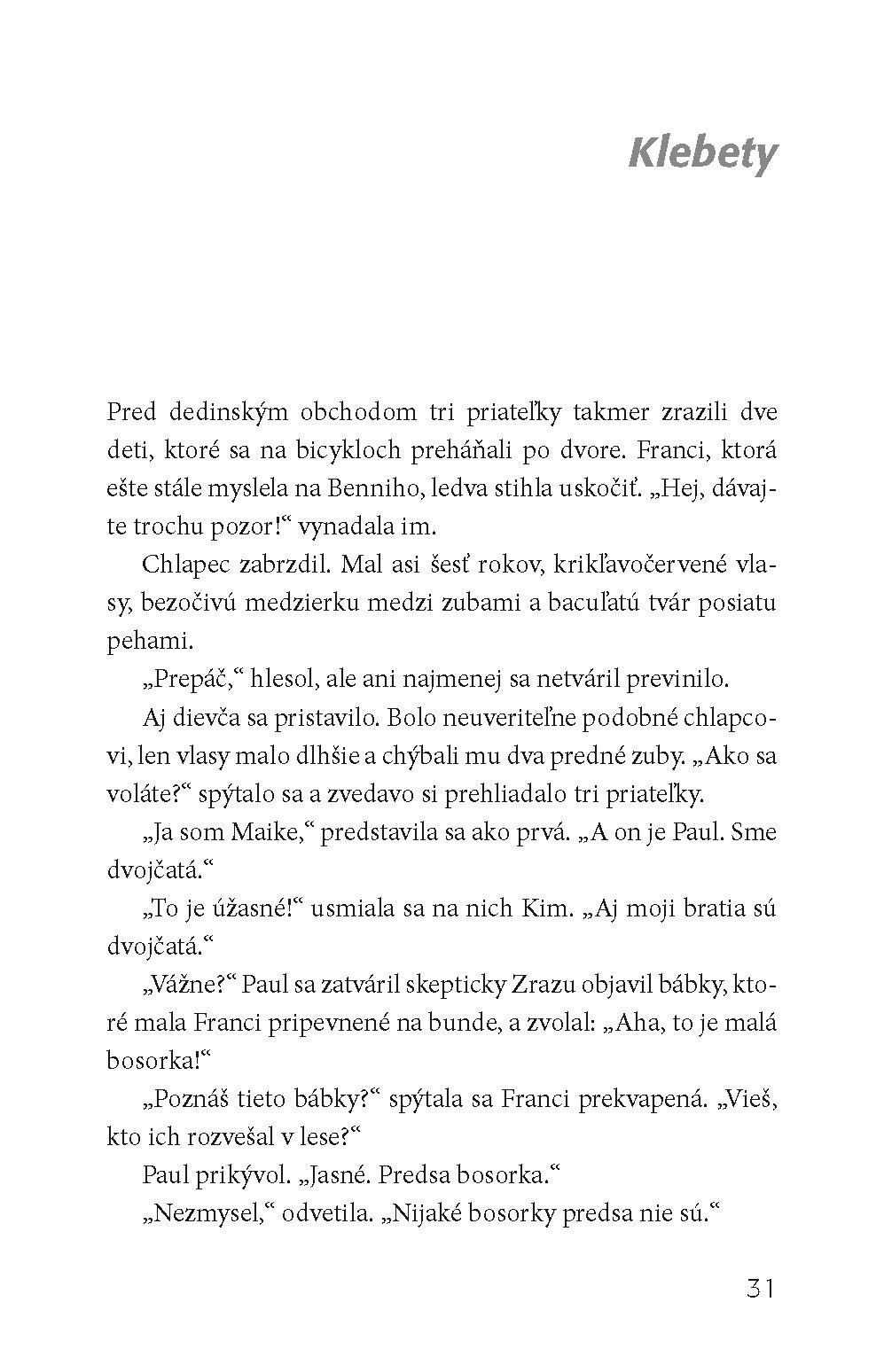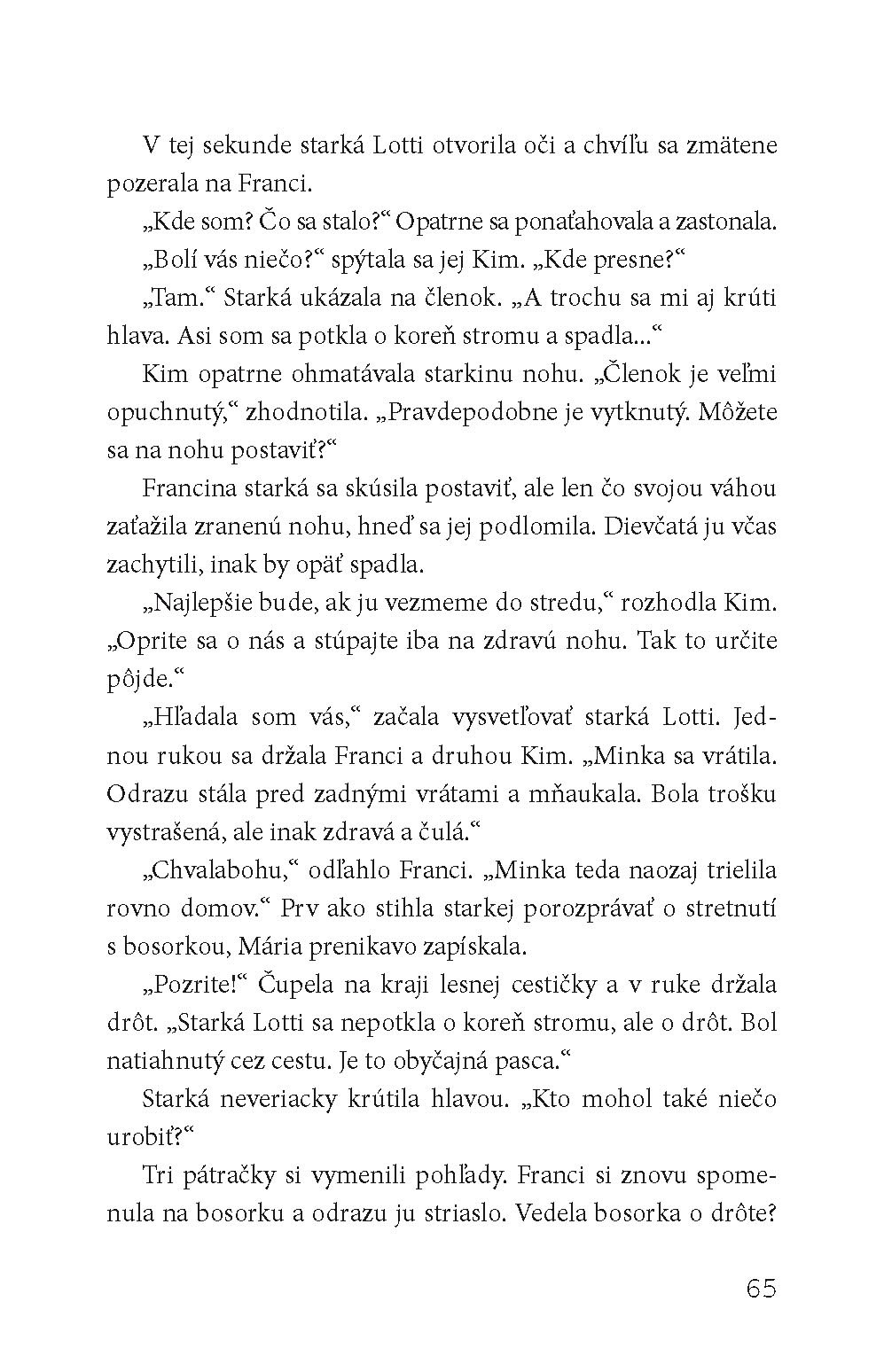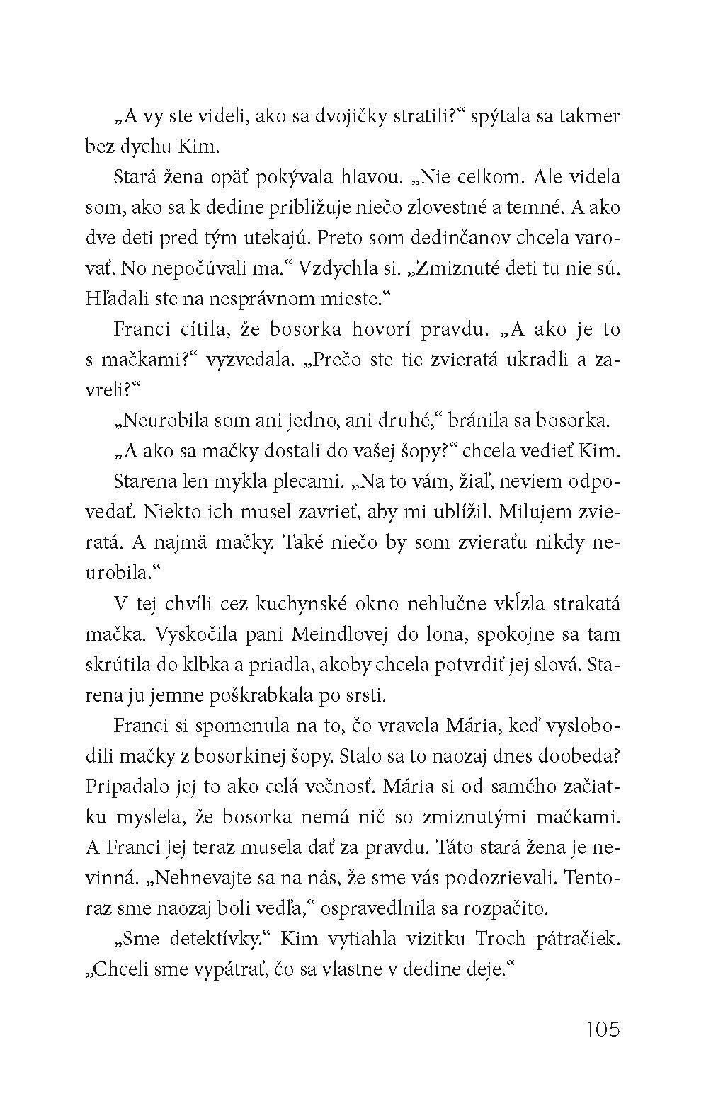Jesenné prázdniny trávia tri nerozlučné kamarátky u Francinej babičky na vidieku. Dom starkej Lotti stojí osamote na kraji Rozprávkového lesa. Podľa legendy sa práve v tomto lese stratili deti, podobne ako v rozprávke o Jankovi a Marienke. Na rozdiel od nej sa však tento príbeh skončil tragicky a dokonca sa vraj naozaj stal! Keď sa do starej schátranej chalupy uprostred lesa prisťahuje záhadná žena, začnú sa strácať čierne mačky a na stromoch sa objavujú strašidelné slamené figúrky detí… Ani ostrieľaným pátračkám nie je všetko jedno…
