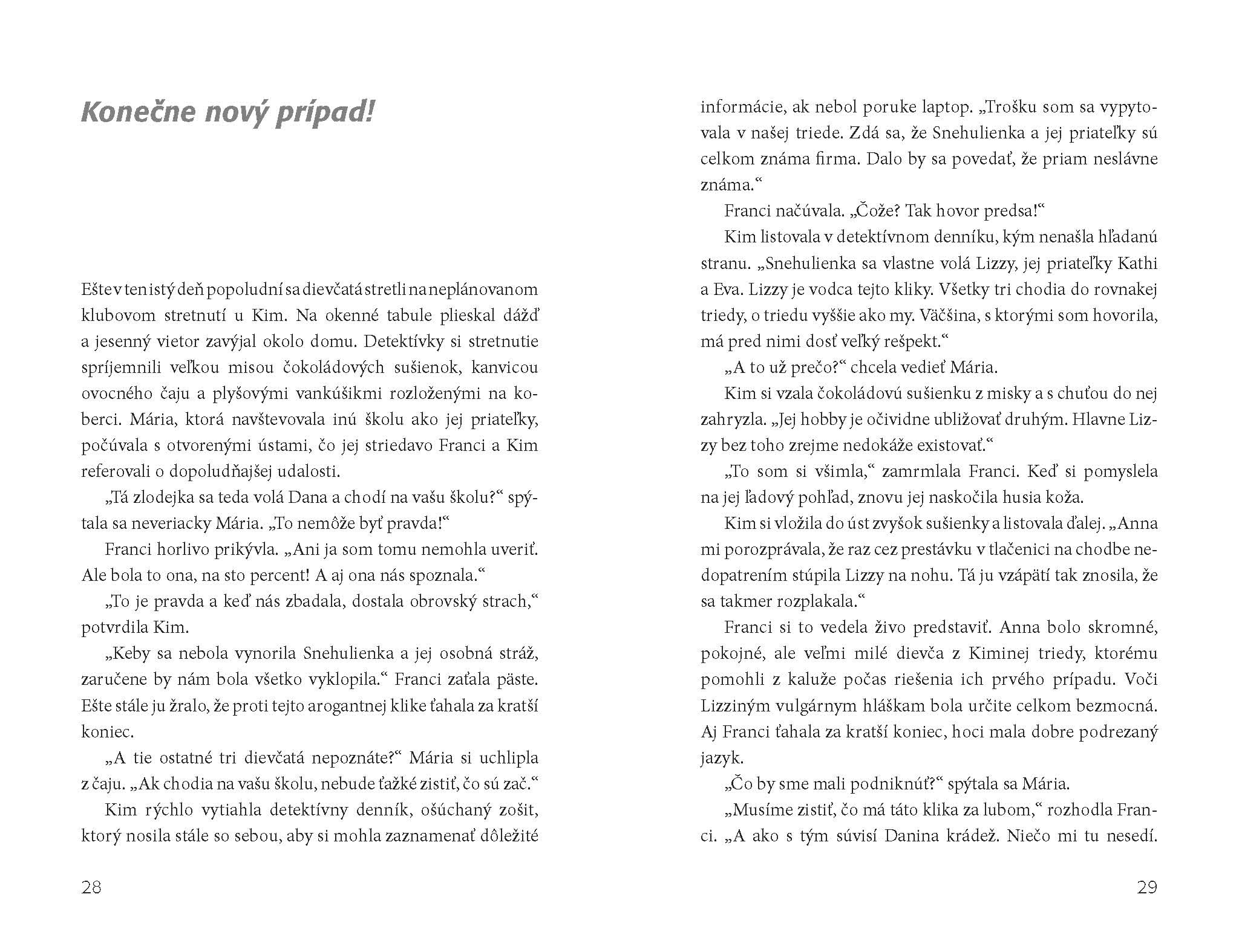 V škole, ktorú Kim, Mária a Franci navštevujú, vyčíňa podlá dievčenská banda. Táto rafinovaná skupina založila webovú stránku, kde zákerným spôsobom ohovára a zosmiešňuje spolužiakov. Tri priateľky z detektívneho klubu pátračiek náhodou pristihnú jedno dievča pri krádeži v obchode. Nestačia sa však čudovať, keď sa dozvedia, že krádež je podmienkou prijatia do tohto pochybného spolku! Okolnosti vyzerajú čoraz podozrivejšie a zdá sa, že pátračky čaká ďalší prípad. Márii sa podarí preniknúť do záhadnej skupinky a to, čo zistí, vyrazí dievčatám dych. Rozhodne treba zakročiť čo najskôr!