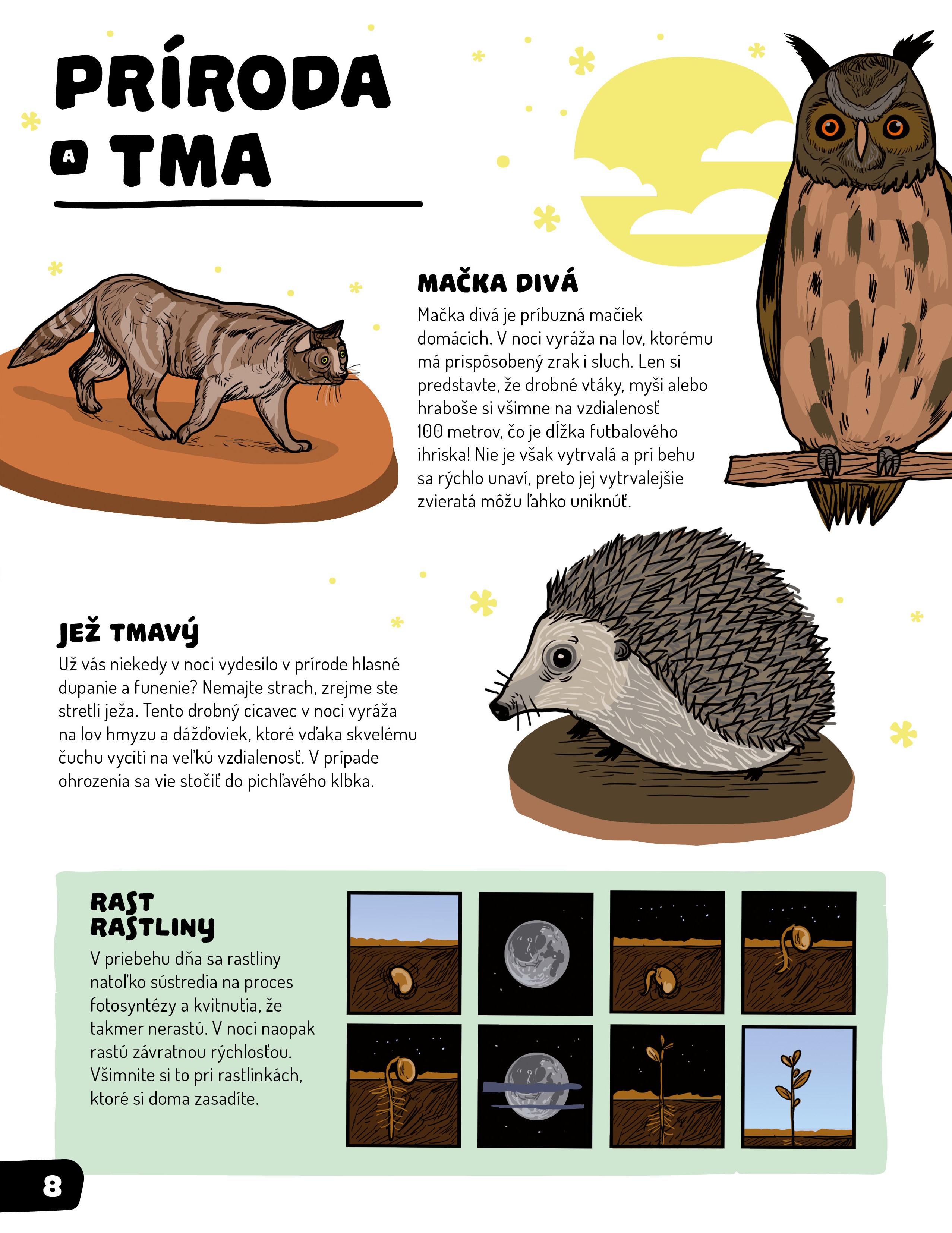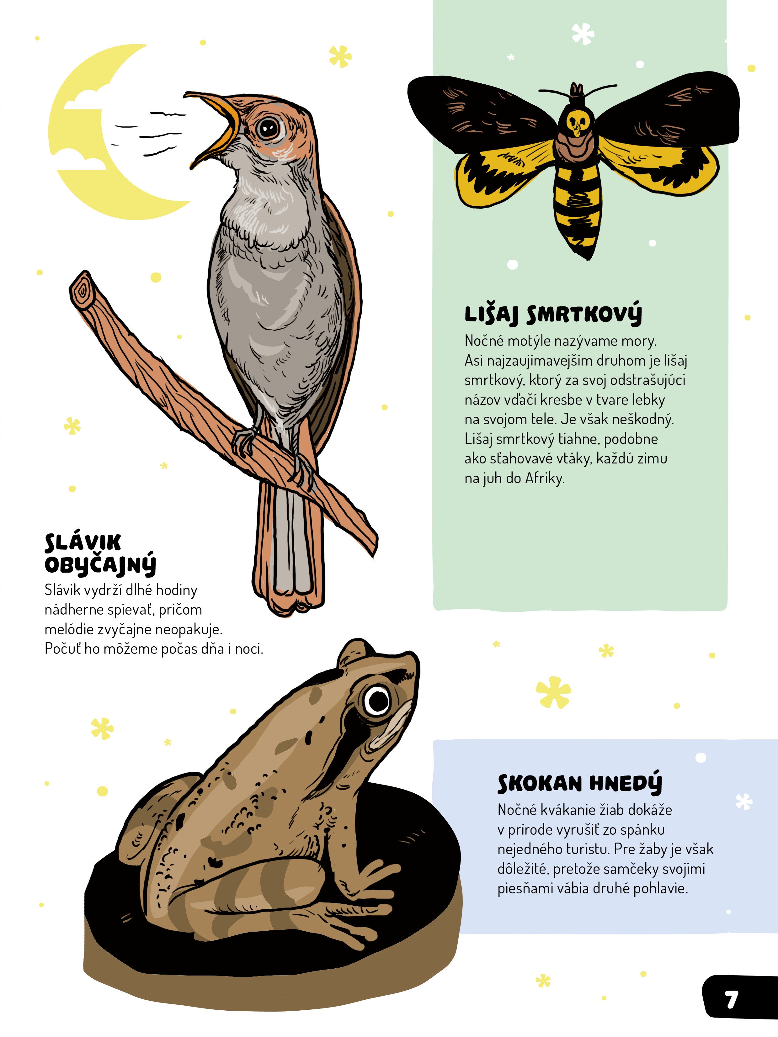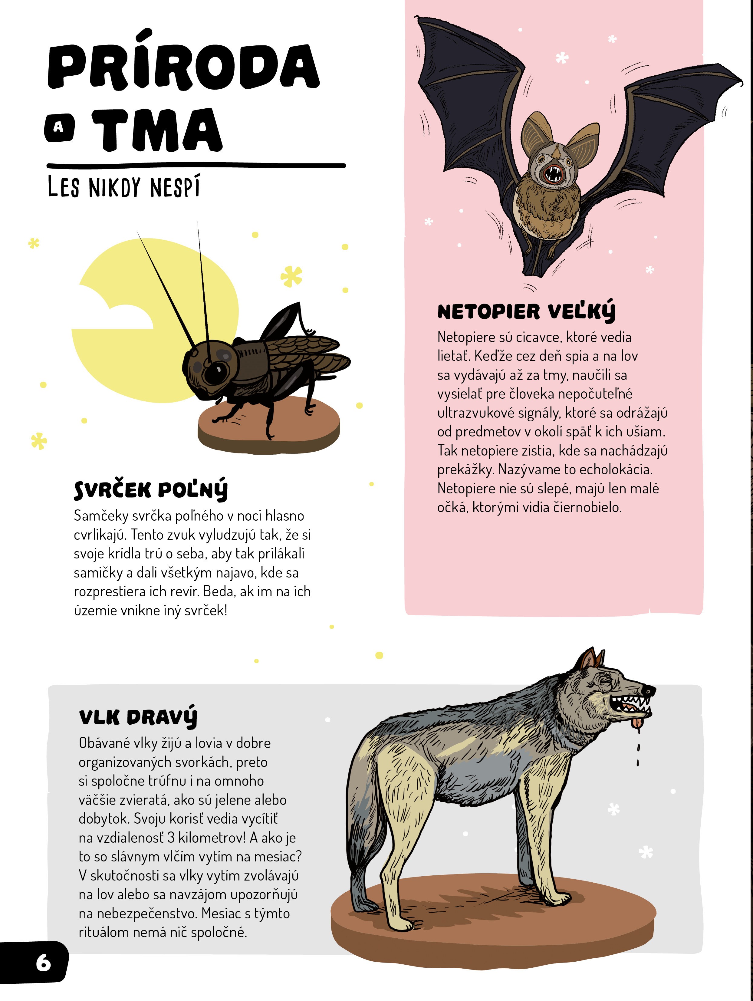 k deťom približujete život prírody, verím, že niektoré zaujímavosti spomenuté v knihe pre ne nebudú až takou novinkou. Zrejme budú vedieť, že existujú svetlušky, že netopiere, či sovy lovia v noci, že taký ježko vychádza na svoje potulky práve po zotmení a pritom veľmi funí, avšak nájdete v nej aj informácie v súvislosti s tmou a nocou, ktoré inde nenájdete a to pekne spolu v jednej knihe.