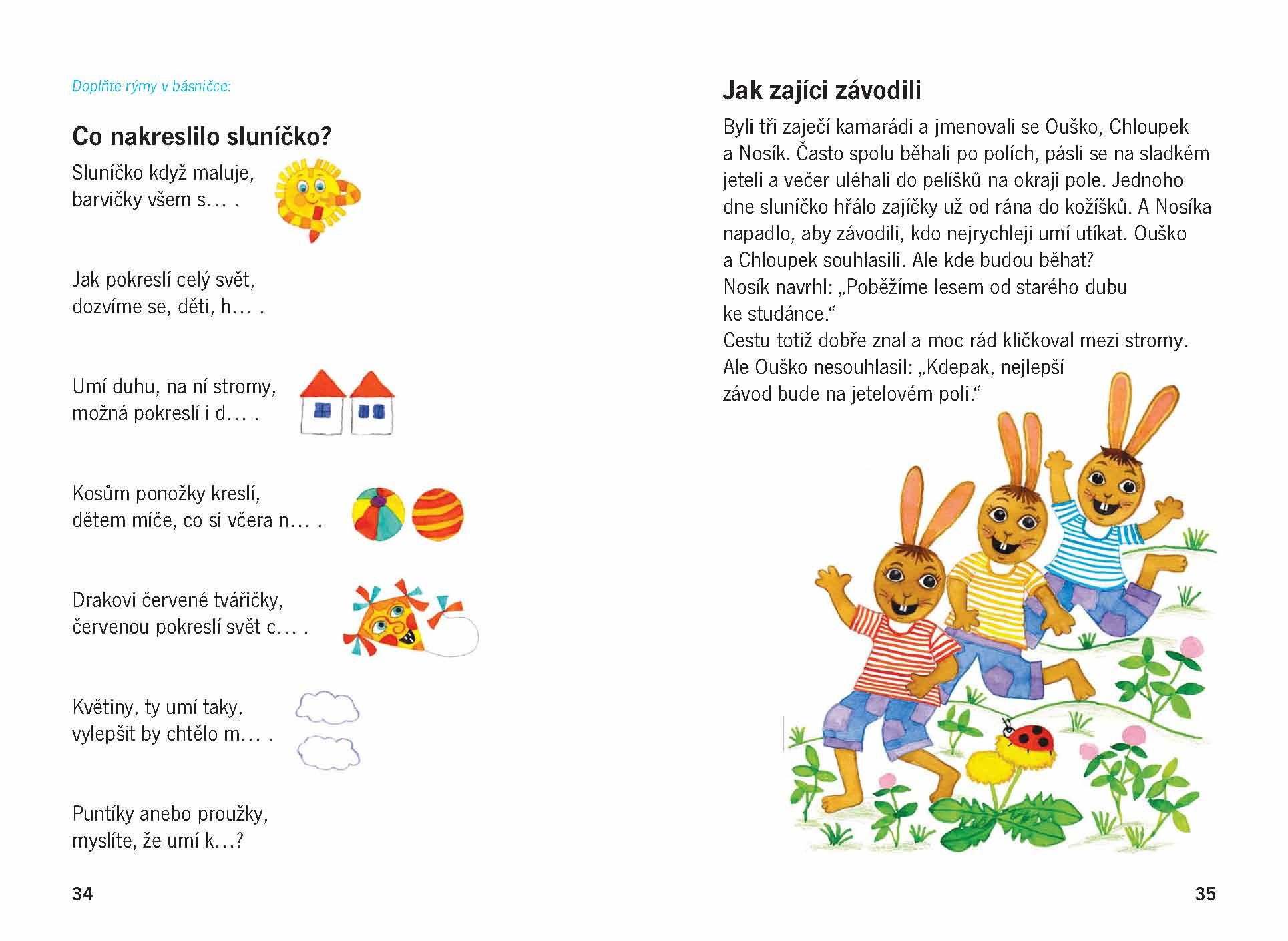 Pestrá knížka pohádek, říkanek, malovaného čtení a hádanek pro předškoláky i školáky.