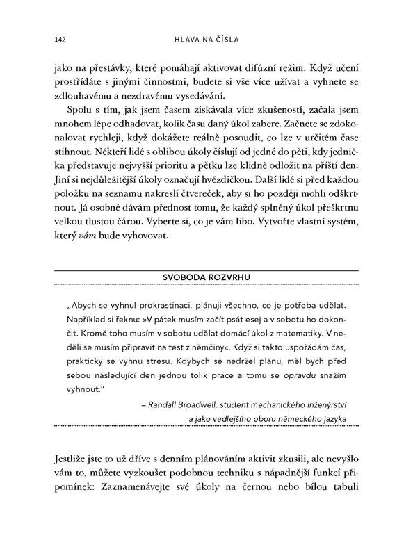 Fascinující knížka nabízí spoustu užitečných postřehů a technik, jak zvýšit efektivitu učení. Dozvíte se, jak udržet pozornost, jak správně procvičovat probranou látku, jak najít klíčové myšlenky a jak si je zapamatovat. Když si osvojíte jednoduché a praktické postupy, které autorka popisuje, budete se učit mnohem snáze, efektivněji a vyhnete se všem těm negativním pocitům, které jste dosud měli s učením spojené.