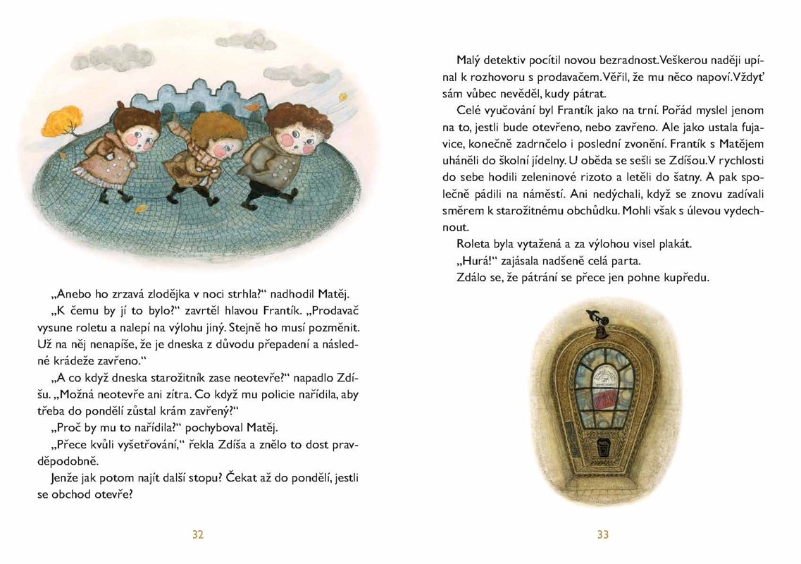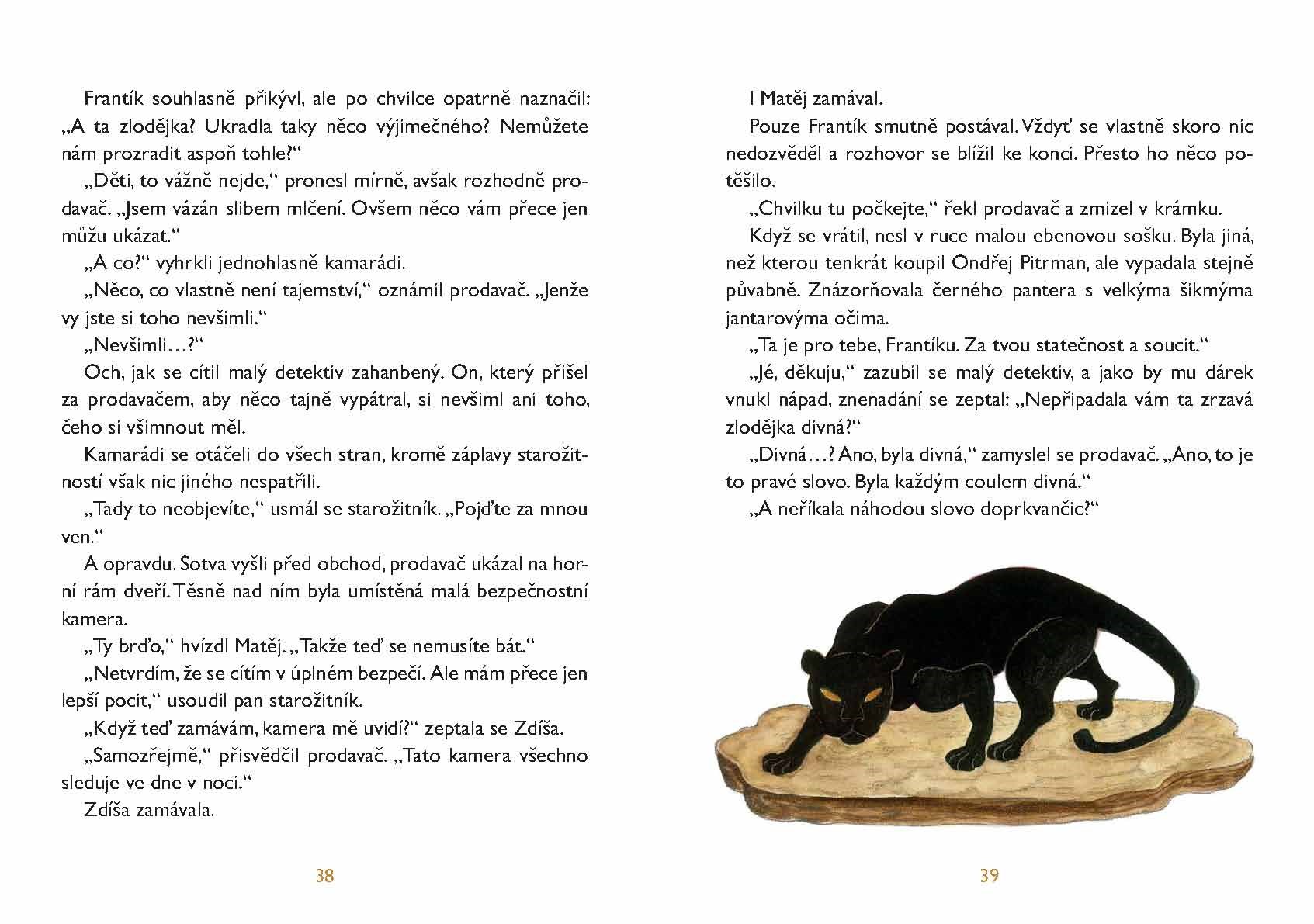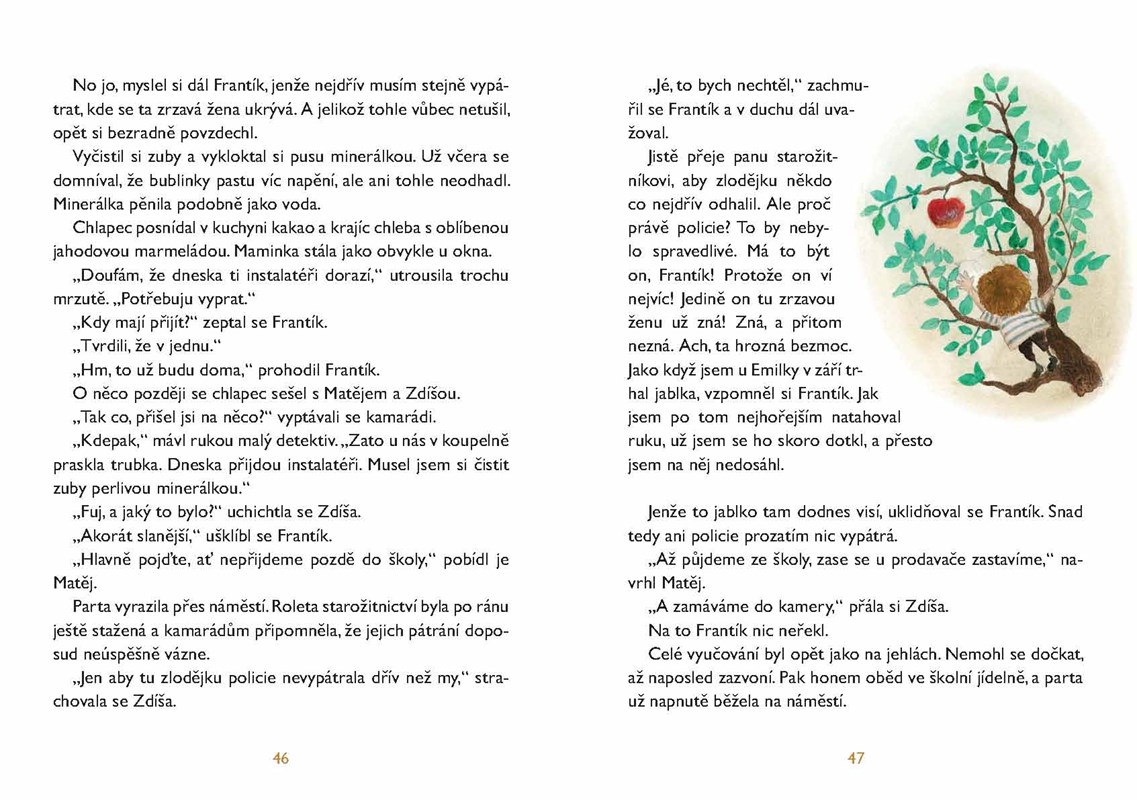 Frantík Lebeda je na svůj věk menší a drobnější, ale hlavu má plnou snů a nápadů. Však už o prázdninách vyřešil případ ztracené vzácné cukřenky tety Emilky. A zdá se, že ani na podzim nebude Frantík zahálet. Stal se totiž nechtěným svědkem přepadení starožitnictví, a to nemůže nechat jen tak! Po horké stopě se nepustí sám, má dva osvědčené pomocníky Matěje a Zdíšu. A jednoho nového – vlčáčka Kazana. Kamarádi, tak vzhůru do pátrání!