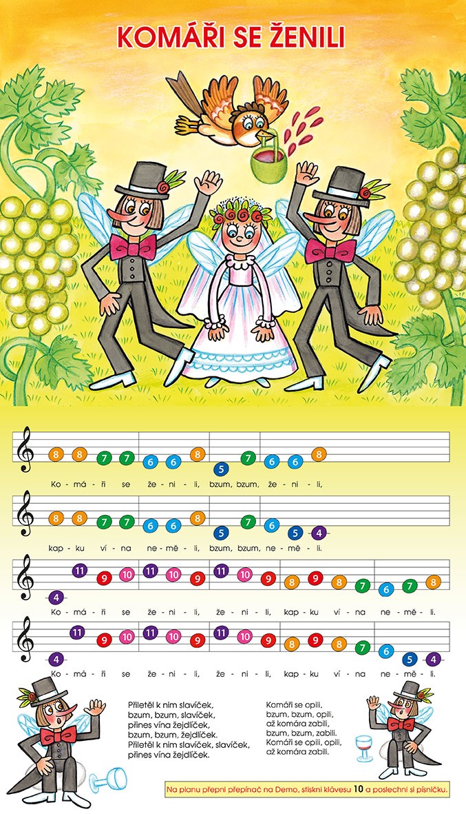Knížka a pianko obsahuje tyto písničky: