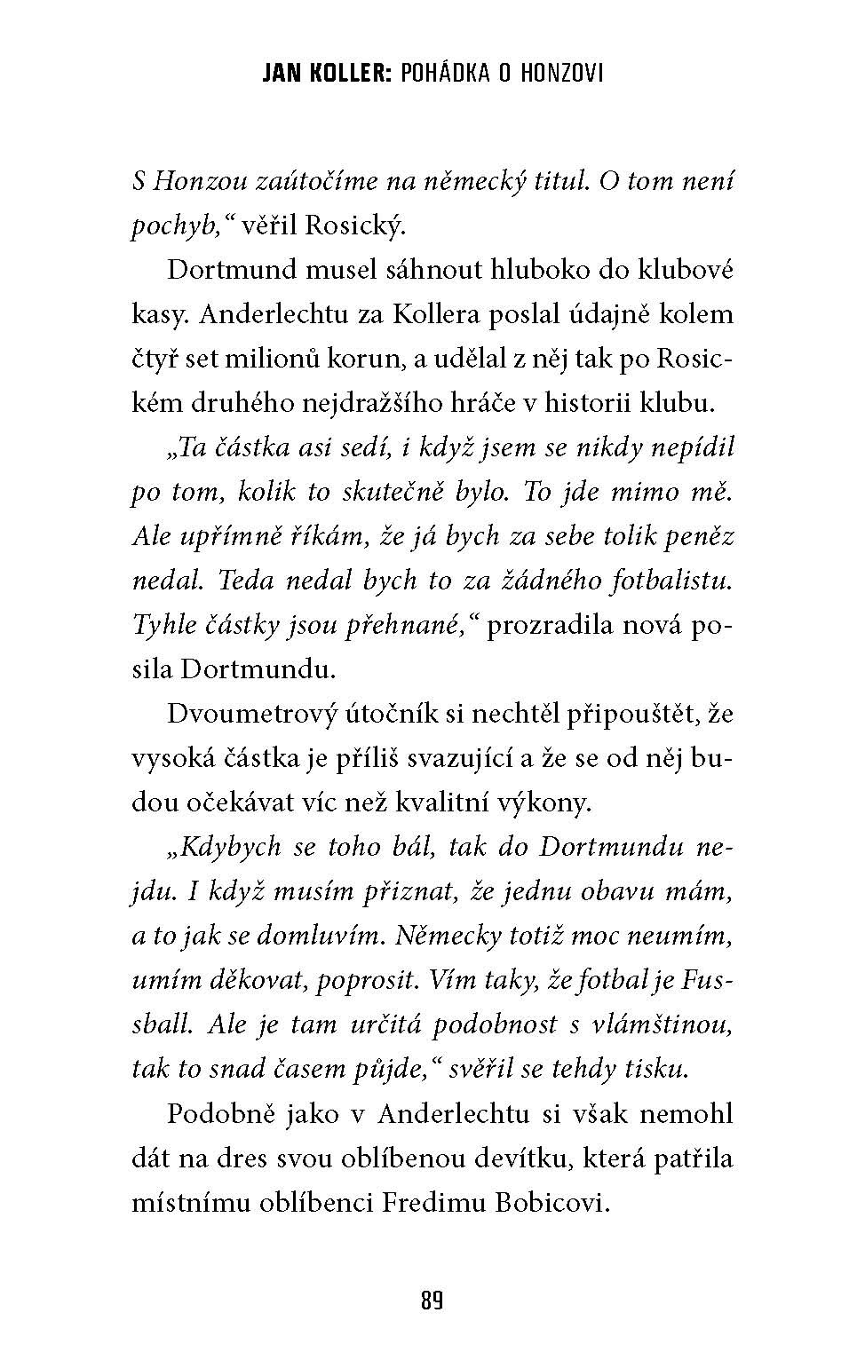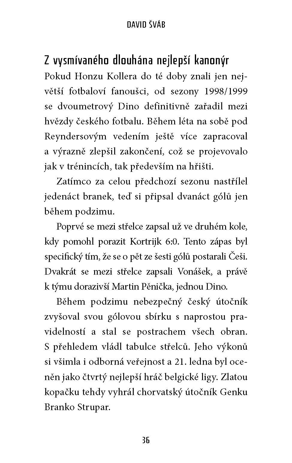 Biografická kniha s příběhem o jedné z nejvýraznějších postav české fotbalové historie – Jana Kollera. Je to příběh fotbalisty, který vyrostl na vesnickém hřišti,procházel okresními týmy, aby se přes angažmá ve Spartě dostal do zahraničí, kde se stal hvězdou a později i nejlepším střelcem v historii české reprezentace. Také je to příběh vyučeného automechanika, kterému kromě velmi dobrých fyzických dispozic pomohla k hvězdné kariéře určitá porce náhody, kdy několikrát byl ve správnou dobu na správném místě.