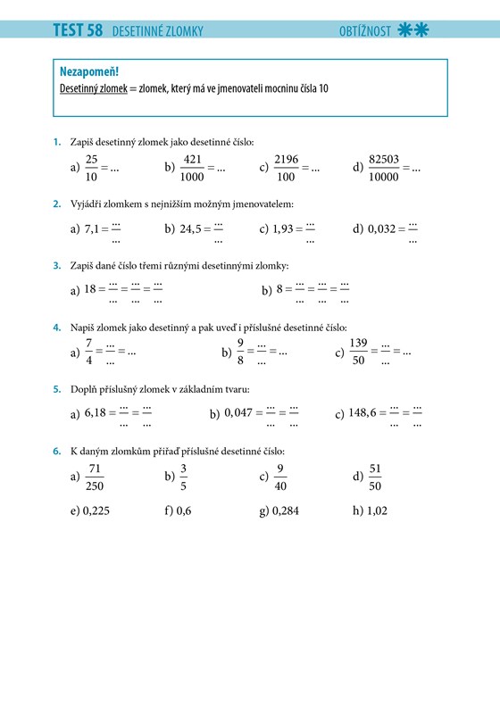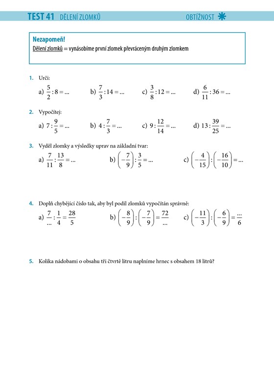 Nevzdávejte to! Další svazek Desetiminutovek je tu právě proto, aby vám pomohl. Najdete v něm 88 minitestů v logickém a přehledném pořadí. Doplňovačky, trocha kreslení, spojování a přiřazování, klasické početní příklady, slovní úlohy a mnoho dalšího, to všechno ve třech různých obtížnostech. Vytrhněte list a počítejte, nebo počítejte a pak vytrhněte list. Záleží jen na vás. Najděte si sami tu nejlepší cestu k matematickému poznání. Vítězná bitva se zlomky může začít!