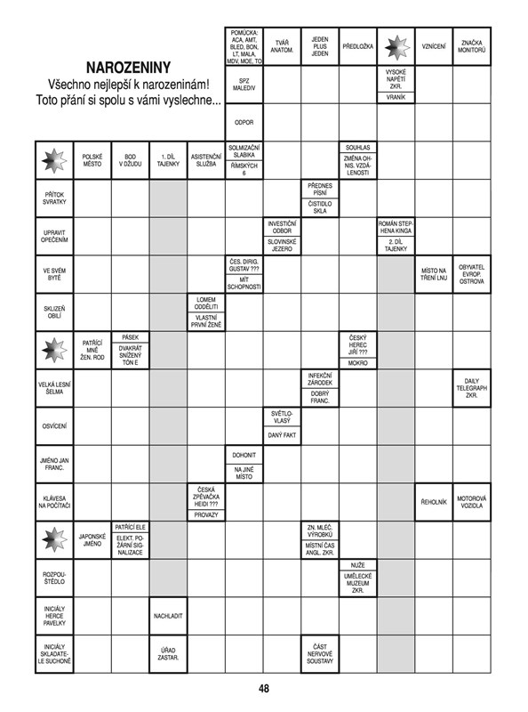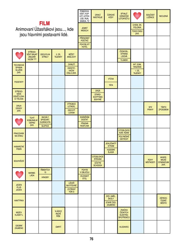 Máme pro vás zbrusu novou publikaci, jež zajisté potěší všechny dětské čtenáře a luštitele. A nejen je. Kniha plná těch nejlepších křížovek, osmisměrek, doplňovaček a rébusů dokonale provětrá mozkové závity a zaručí spoustu hodin skvělé zábavy. V tajenkách pak naleznete pestrý koktejl informací a zajímavostí, který opět o něco rozšíří vaše vědomostní obzory. Takže s chutí do toho, půl je hotovo! Přejeme vám mnoho zdaru a dobrou náladu při luštění.