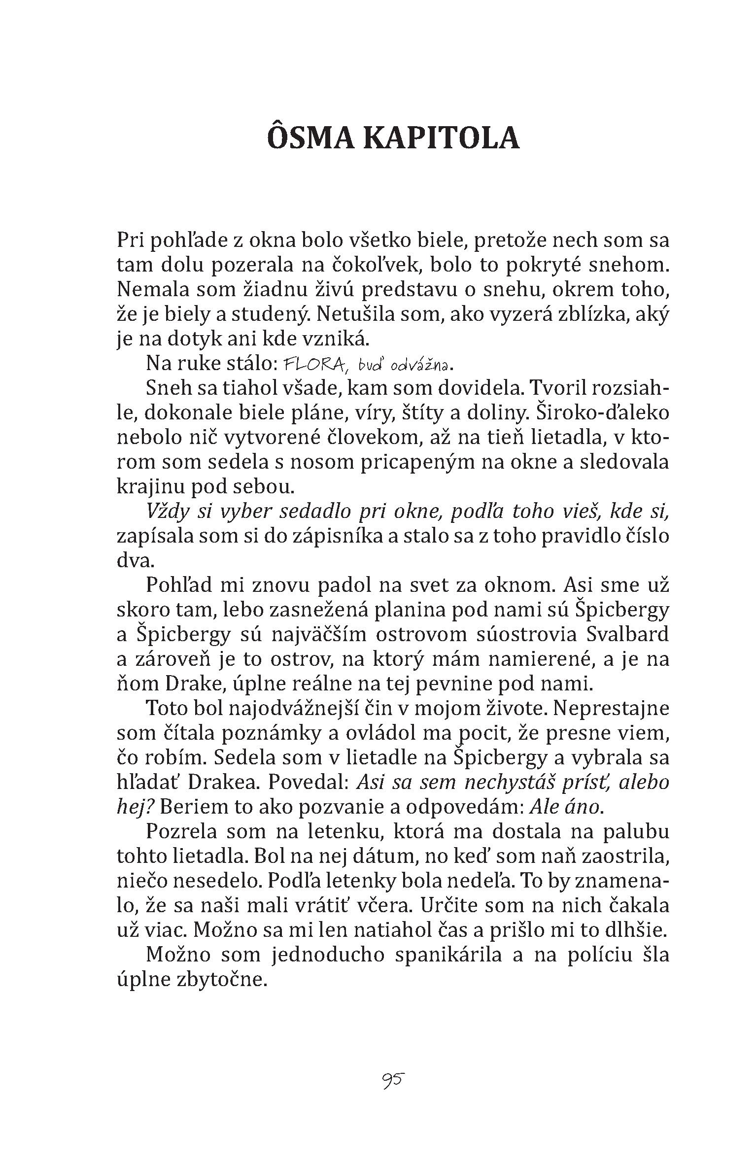 Hlavná postava tohto príbehu mi spočiatku vadila. Neustále opakovala tie isté slová, robila tie isté úkony a správala sa rovnako, čo po chvíli začne čitateľa nudiť. Aj napriek tomu som však v čítaní pokračoval. Autorka svoju knihu napísala pútavo a hoci sa v nej na začiatku deje stále to isté, v čitateľovi Barrová vyvoláva akýsi pocit tajomna. Pocit, že sa o pár strán ďalej stane niečo, čo celý príbeh úplne zmení. A to sa naozaj stalo, keď sa Flora v polovici knihy vyberie na zasnežený Svalbard. Úplne sama, v novom kabáte, s notesom a papierikmi, ktoré jej pomáhajú nezabudnúť, prečo sa do tejto severnej krajiny vlastne vybrala. Pobozkala som Draka, ostalo v jej vnútri. Román od tohto momentu zobrazuje väčšie množstvo emócií, spontánnosti a takisto poukazuje na to, prečo je dôležité ísť si za vlastným snom.