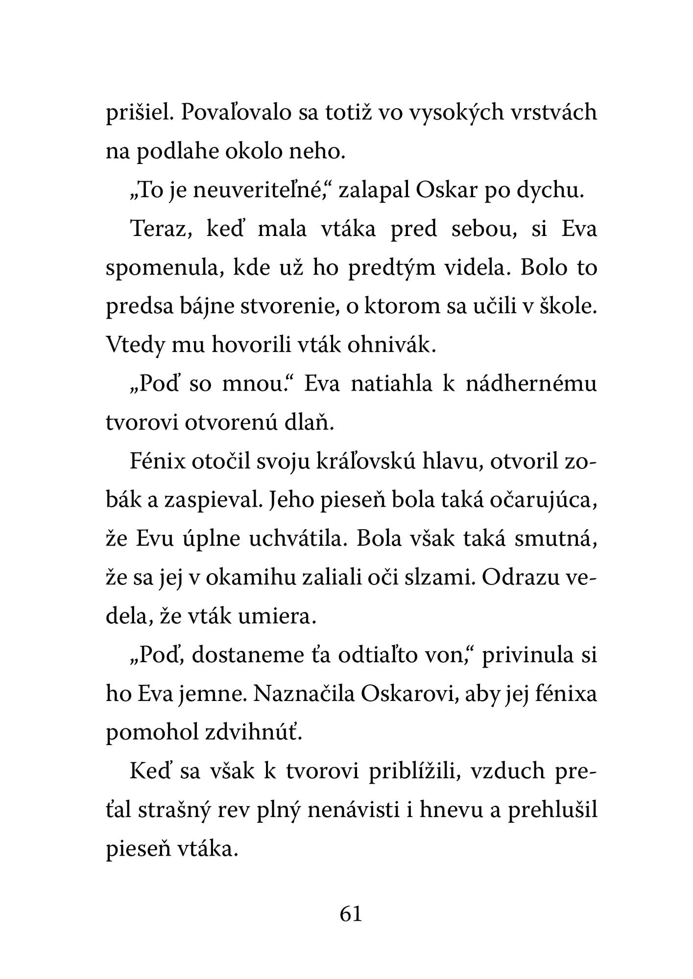 Pri prehliadke starého obchodu so starožitnosťami narazí Eva na malú krištáľovú sošku fénixa. Kým si uvedomí, o čo ide, dotkne sa jej – a razom sa ocitne v rozbúrenej rieke, ktorá uháňa k strmému vodopádu. Už je to tu zas!