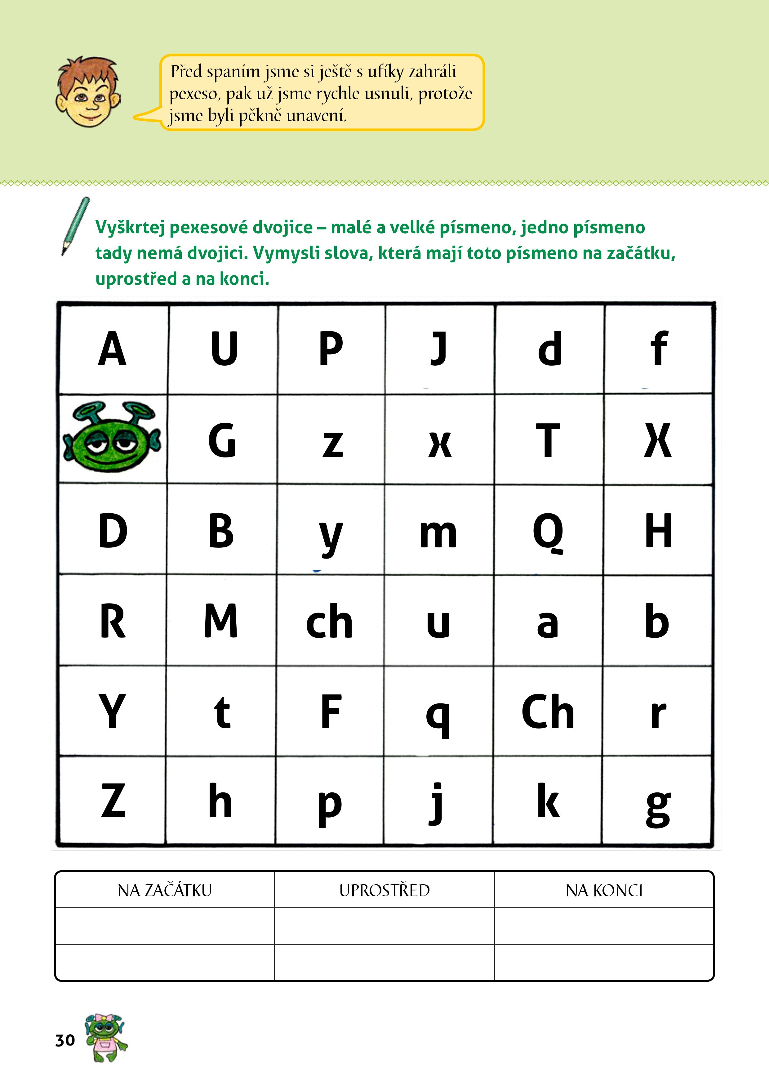 V této publikaci si děti zábavnou formou procvičí základní učivo 1. třídy. Spolu s hlavními hrdiny prožijí dobrodružství s legračními ufíky a zároveň si zopakují český jazyk, matematiku i prvouku. V knize ale nenajdete klasická školní cvičení, děti se budou bavit u křížovek, doplňovaček, hádanek a dalších zábavných úloh, které jsou doplněny vtipnými ilustracemi. Všechna cvičení jsou navíc zapracována do poutavého příběhu, takže děti si procvičí znalosti získané v první třídě jednoduše a nenápadně. Návrat do školních lavic tak pro ně bude mnohem snazší.