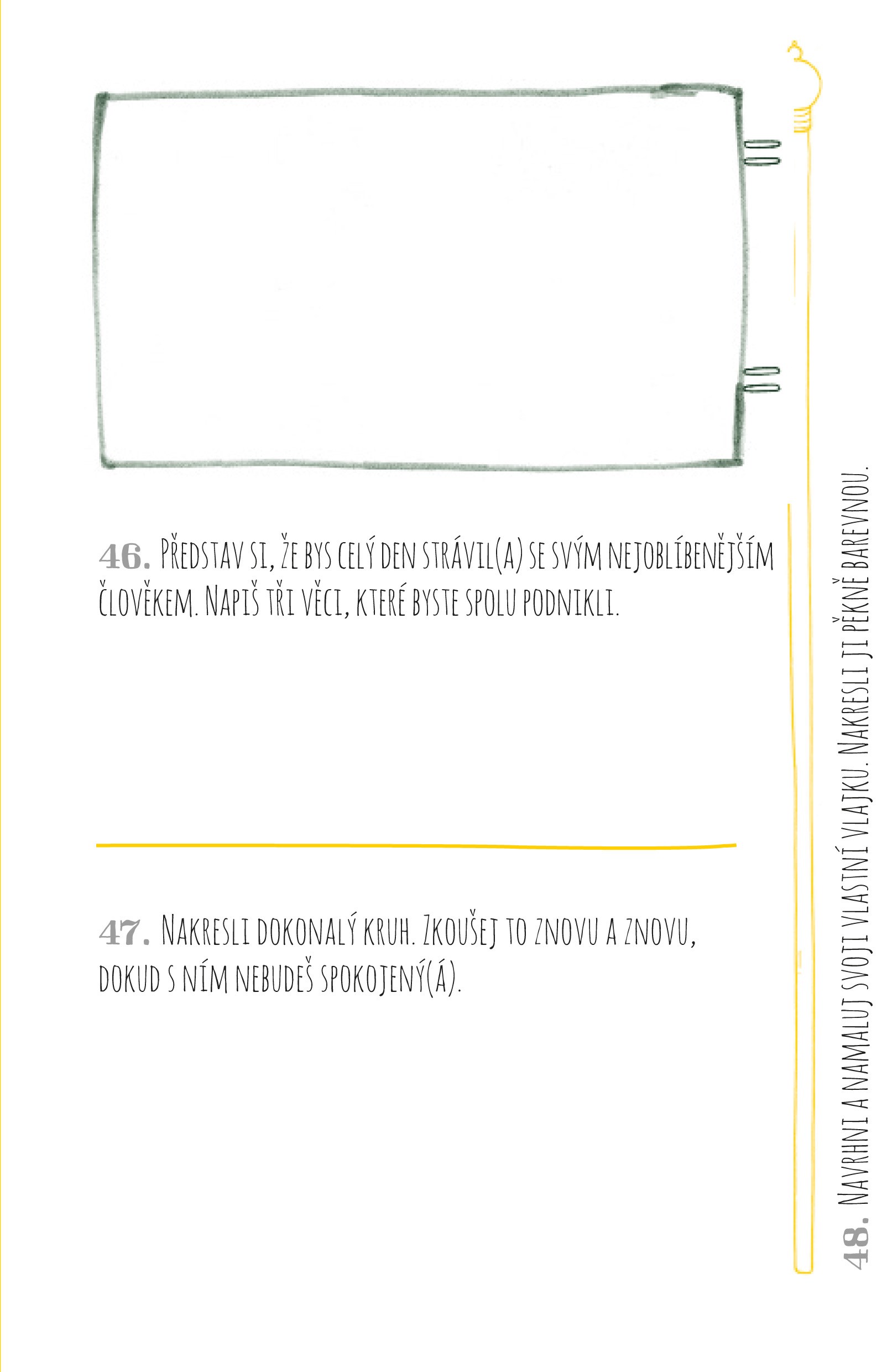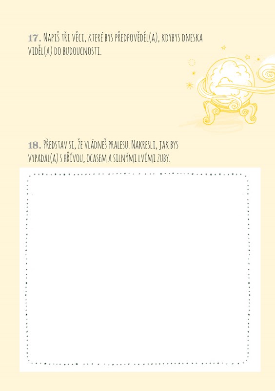 Naplánujte si výlet svých snů, navrhněte design vlastního surfovacího prkna, uvařte oběd pro mimozemšťana, který vám přistál na zahradě, vymyslete jiná slova pro vaši nejoblíbenější písničku, načrtněte, jak byste asi vypadali na rentgenu – a stovky dalších aktivit, které vás zabaví na každý den v následujícím roce!