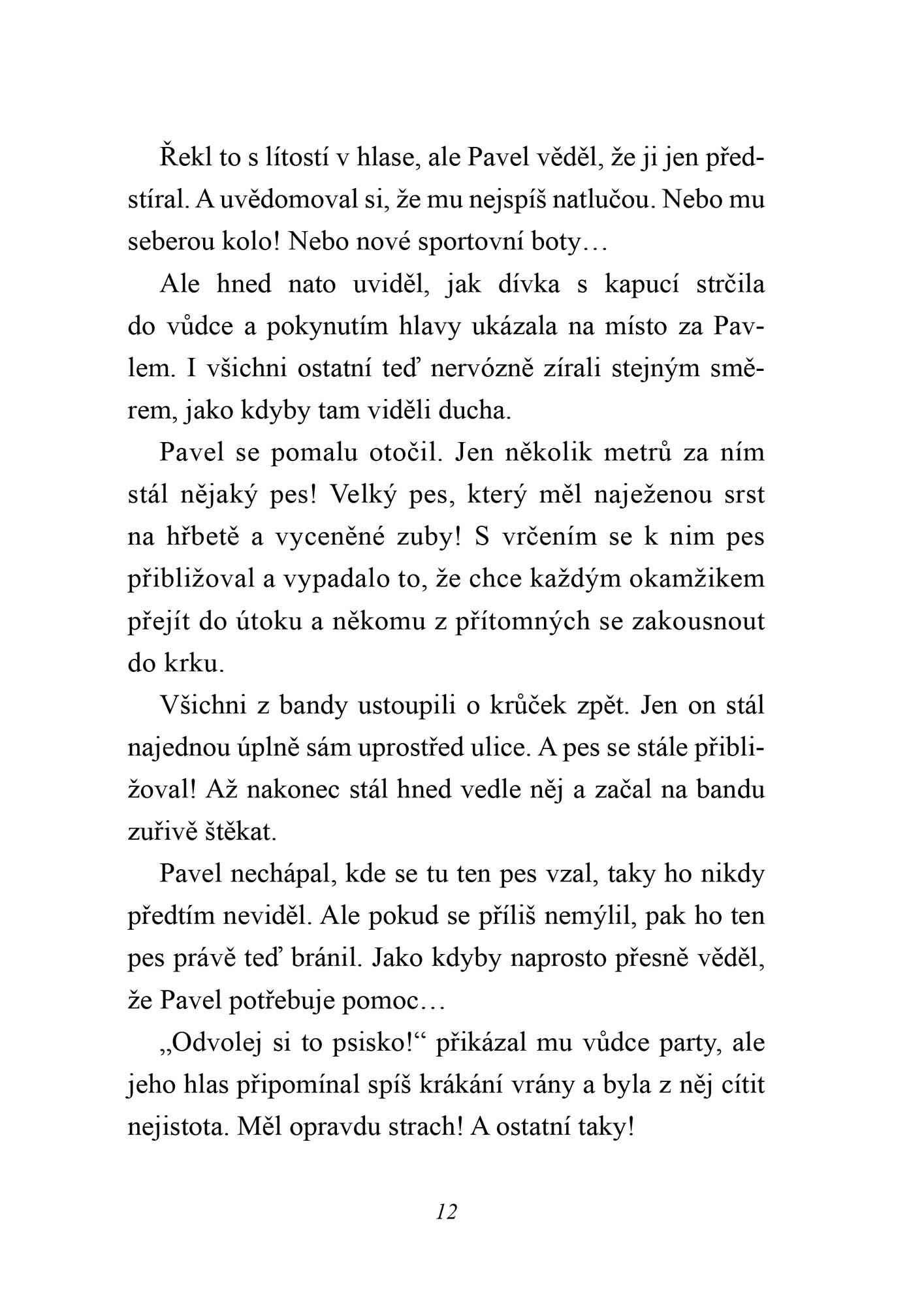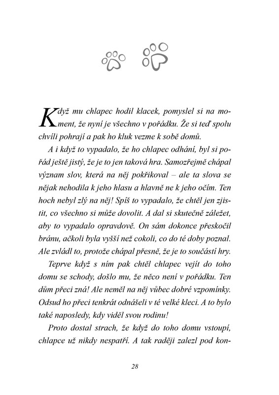Když si Pavel jednoho dne vyrazil sám na kole, počíhala si na něj banda výrostků. Chtěli po něm peníze a Pavlovi bylo jasné, že proti nim nemá šanci. Ale v tom se po jeho boku objevil zdivočelý pes a přiměl těch pět chuligánů k útěku. Od té chvíle se už od chlapce nevzdálil.