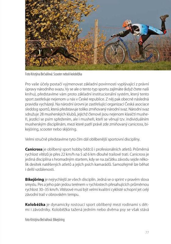Pokud jste vy i váš pes pro společné sportování skutečně zahořeli, naleznete zde i základní informace o dalších sportech se psem – běžkování, jízdě na koloběžce, jízdě na kole a dogtrekkingu. Jedna kapitola je také věnována canicrossu s dětmi.