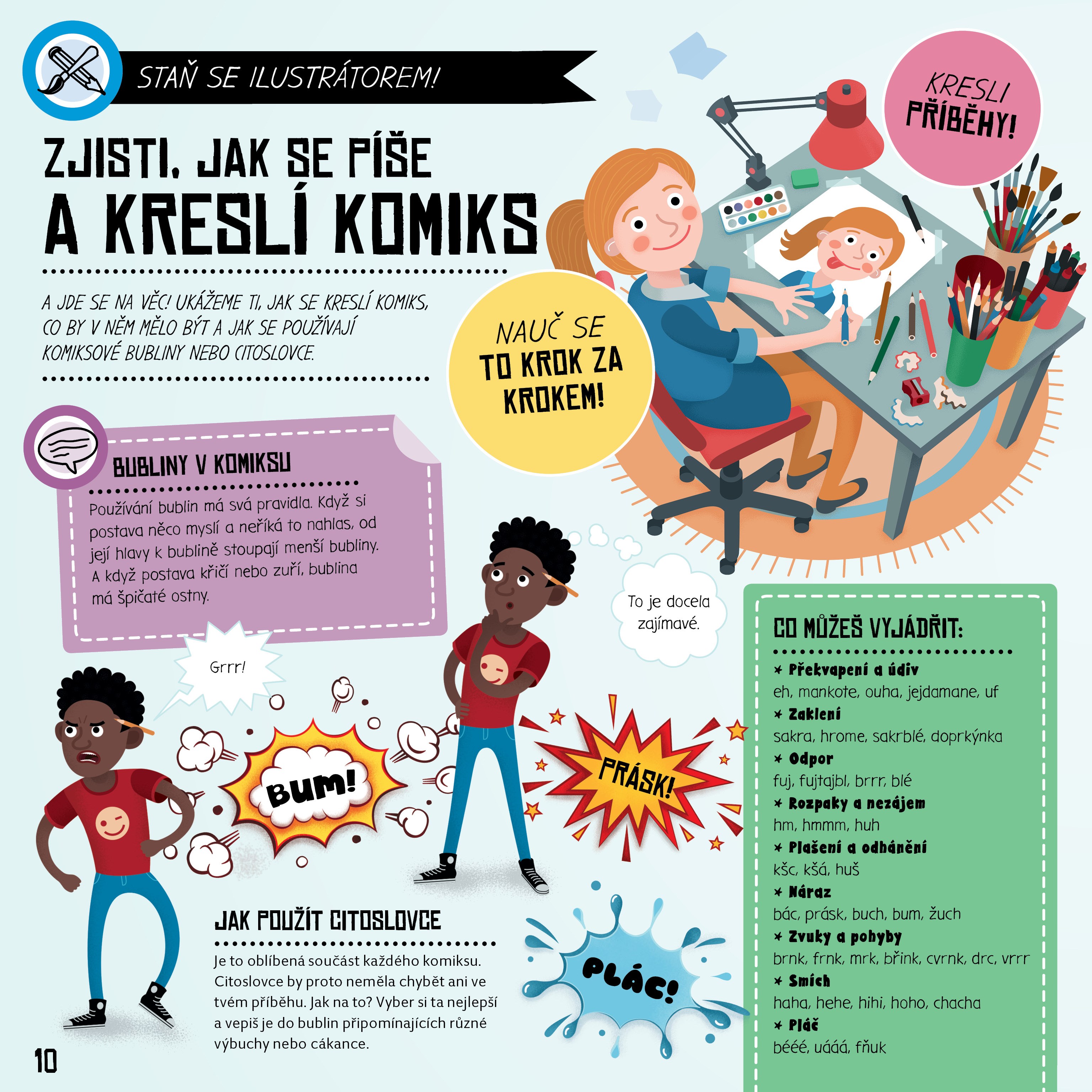 Baví tě vymýšlet si vlastní příběhy a chceš napsat knihu? Čteš raději pod lavicí komiksy než učebnice a pořád si kreslíš fantastické postavičky? Zajímá tě vše, co se kolem tebe děje, a chceš o tom dát vědět ostatním? V tom případě je tato kniha právě pro tebe! Otevři ji a zjisti, JAK SE STÁT MISTREM VYPRAVĚČEM. Staň se spisovatelem, ilustrátorem, novinářem! V této knize se dozvíš, jak vymyslet příběh a napsat knihu, jak nakreslit senzační komiks nebo jak založit redakci a vytvořit ten nejkrásnější časopis na světě. Kniha je interaktivní, najdeš v ní všechno, co budeš ke své práci potřebovat – návody, rady, tipy i řadu vložených materiálů, které si můžeš vytáhnout a dotvořit podle sebe: průkaz novináře, knihu nebo časopis a také komiksové bubliny. Kniha JAK SE STÁT MISTREM VYPRAVĚČEM je vhodná pro malé spisovatele, ilustrátory a novináře, ale i pro jejich rodiče, kteří se chtějí pobavit a něco se dozvědět.