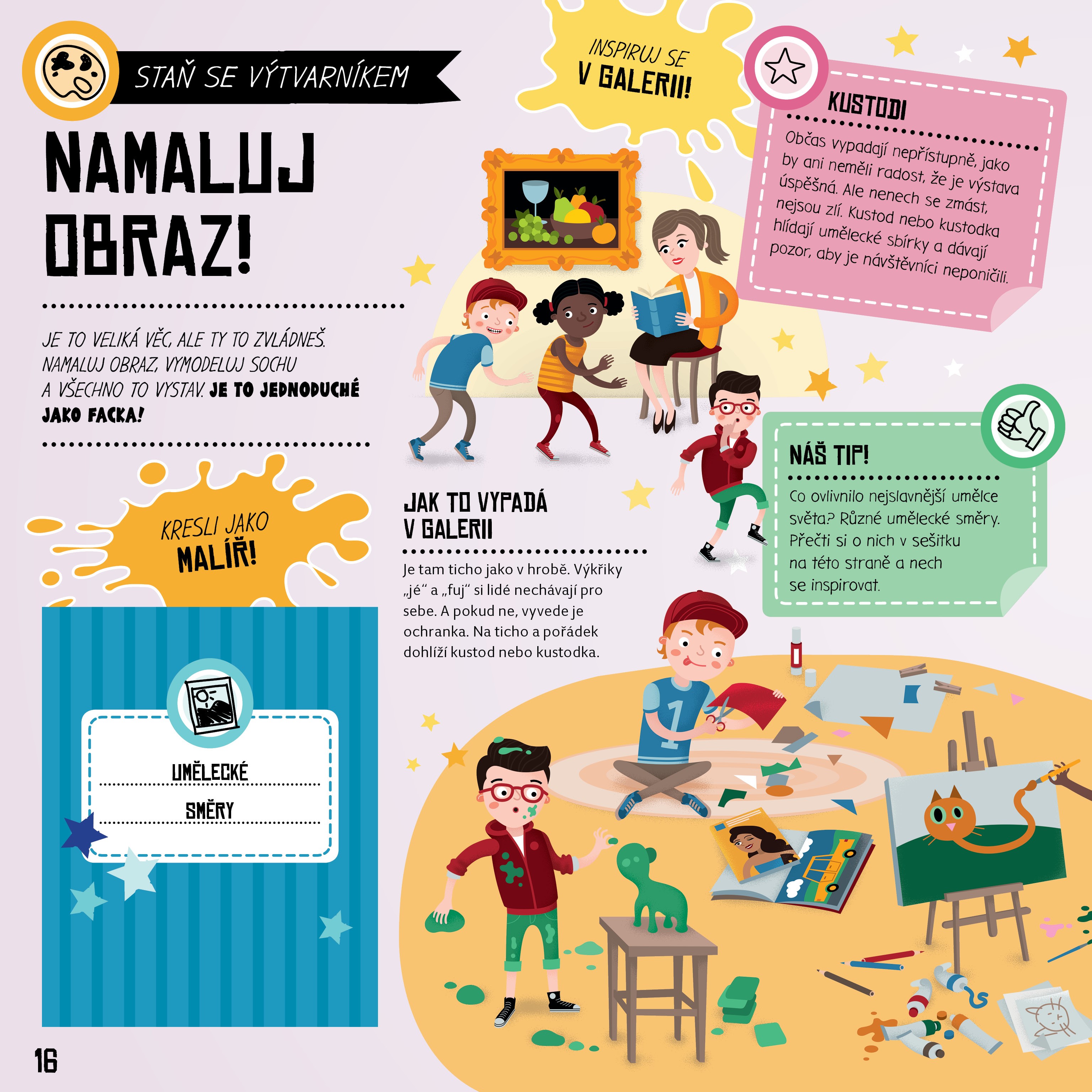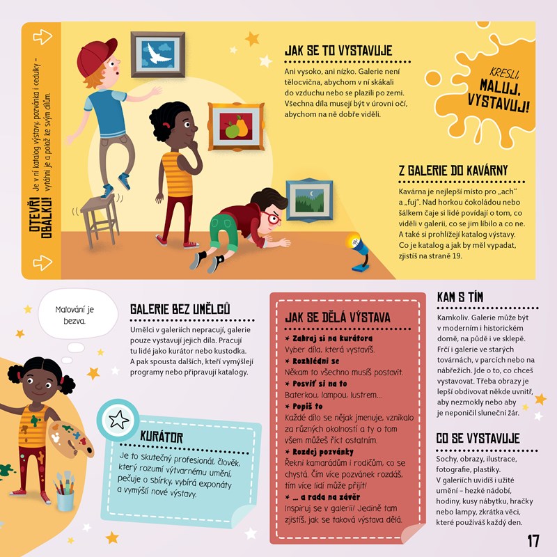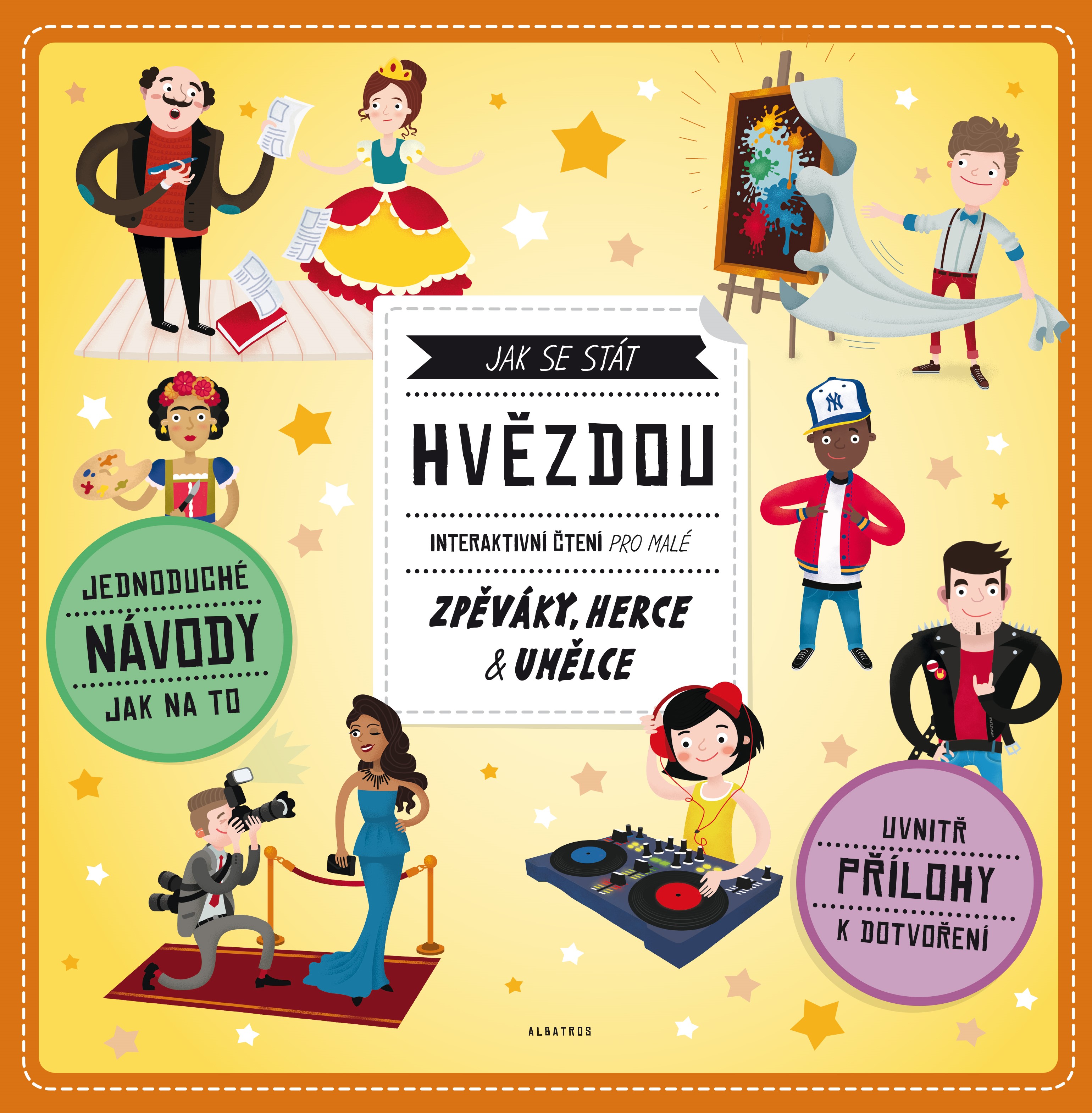Chceš zpívat, založit kapelu a pobláznit davy fanoušků? Chceš si od rána do večera hrát, nosit senzační kostýmy a získat sošku pro nejlepšího herce na světě? Chceš kreslit nebo malovat, stát se slavným výtvarníkem a zapsat se do dějin umění? V tom případě je tato kniha právě pro tebe! Otevři ji a zjisti, JAK SE STÁT HVĚZDOU. Staň se zpěvákem! Staň se hercem! Staň se výtvarníkem! V této knize se dozvíš, jak založit kapelu a uspořádat koncert, jak napsat divadelní hru a vymyslet senzační divadelní představení nebo jak připravit fantastickou výstavu, ze které se lidem bude tajit dech. Kniha je interaktivní, najdeš v ní všechno, co budeš ke své práci potřebovat – návody, rady, tipy i řadu vložených materiálů, které si můžeš vytáhnout a dotvořit podle sebe: plakát, vstupenky, katalog výstavy, divadelní masky nebo „oskarovou“ sošku. Kniha JAK SE STÁT HVĚZDOU je vhodná pro malé muzikanty, herce, výtvarníky, ale i pro jejich rodiče, kteří se chtějí pobavit, něco se dozvědět a v myšlenkách se vrátit zpět do světa dětských snů a velkolepých plánů.