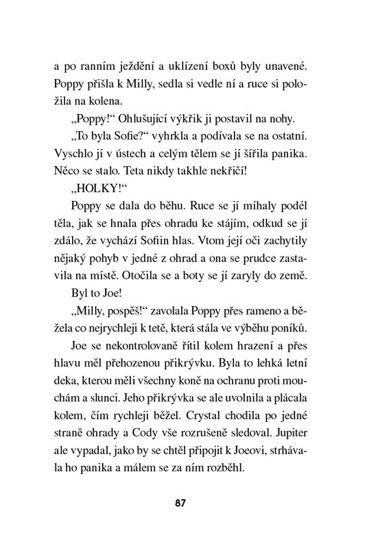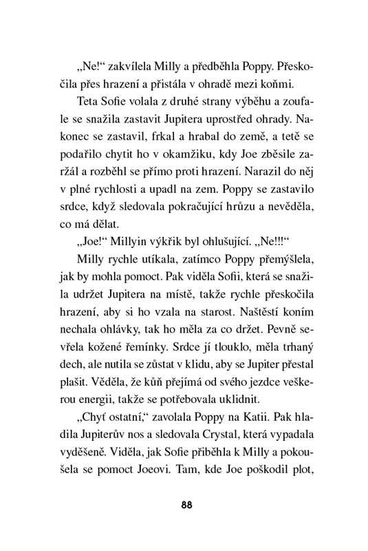 Z Poppy, Katie a Milly se staly nerozlučné kamarádky. Teď mají před sebou své první závody a všechen čas věnují přípravě. Nejsou však samy. Trénovat s nimi začala Jessica. Je nepříjemná, protivná a chová se divně. Její zamračenost ovlivňuje náladu ve stájích, kde se navíc začaly dít divné věci. Jedná se o náhodné události, které spolu nesouvisí, nebo za vším stojí zákeřná Jessica, která chce holkám závody překazit?