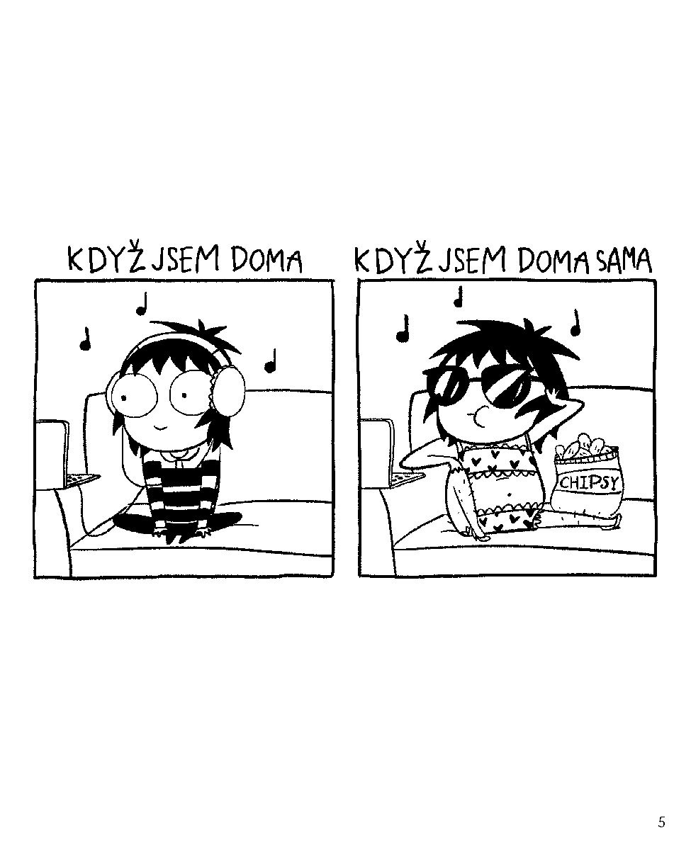 Další svazek pro všechny, kdo čtení považují za smysl života, kdo zvládnou celou řadu seriálu za jedinou noc, kdo se nejraději tulí v krásně teplých vytahaných svetrech, kdo žijí se svou kočkou, kdo se bojí více jak jednoho člověka v místnosti a kdo si připadají výjimečně nevýjimeční. Prostě pro všechny, kdo milují Sarah's Scribbles a našli se v jejích komiksech.