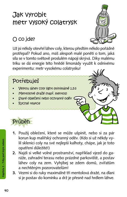 Oblafni své okolí bombastickými efekty jako jsou podomácku vyrobené blesky nebo explodující bomba z koláče. Nauč se, jak překvapit sněhovou bitvou v nejparnějším létě, jak uvařit špagety z březové kůry nebo jak se podívat na dno louže. Odhal skrytá tajemství fyziky, chemie, biologie a techniky.