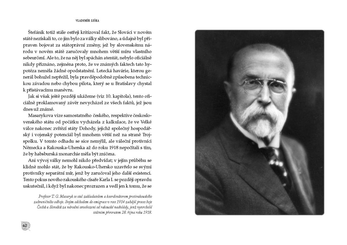 Text se neomezuje pouze na osobnost T. G. Masaryka, pozornost je věnována i E. Benešovi a svou samostatnou kapitolu zde má M. R. Štefánik – v ní je analyzován jeho rozporuplný vztah k prvnímu československému prezidentovi. Za zmínku také stojí odbočka k legiím, jež jsou v současných školských osnovách vcelku opomíjeny.