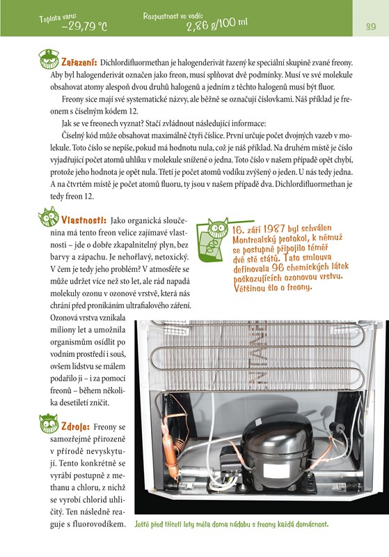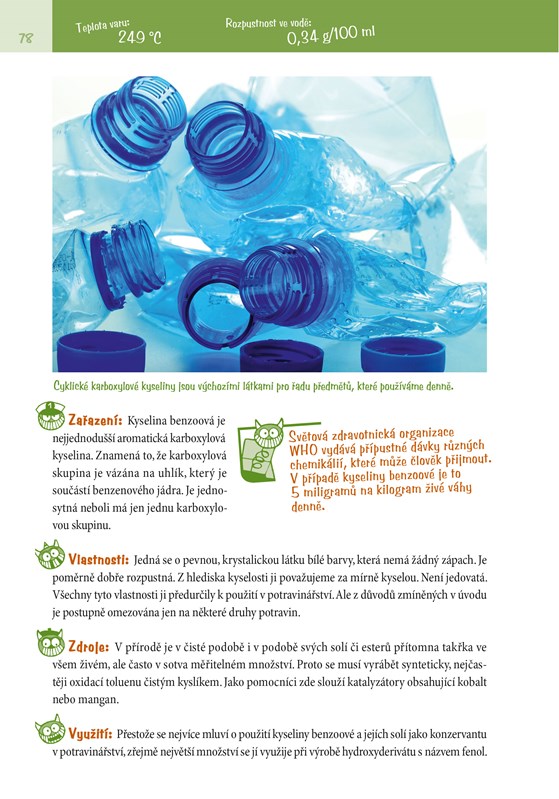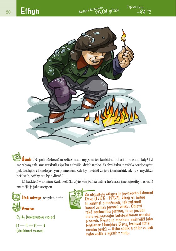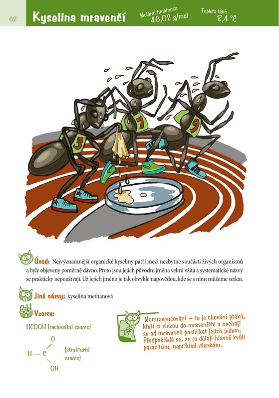 Biologové říkají, že na světě je asi deset milionů druhů živočichů a deset milionů z nich jsou zástupci hmyzu. Chemici by mohli tvrdit, že na světě je deset milionů sloučenin, z nichž deset milionů jsou sloučeniny organické. A my vám jich na stránkách této knihy představujeme jen několik desítek. I tak se dozvíte mnoho informací o plynu, který ve většině domácností zajišťuje teplo, o kapalině, pomocí níž se většina z nás přemisťuje z místa na místo, o kyselině, díky níž jste podobní svým rodičům a nenarodili jste se jako moucha nebo kaktus.