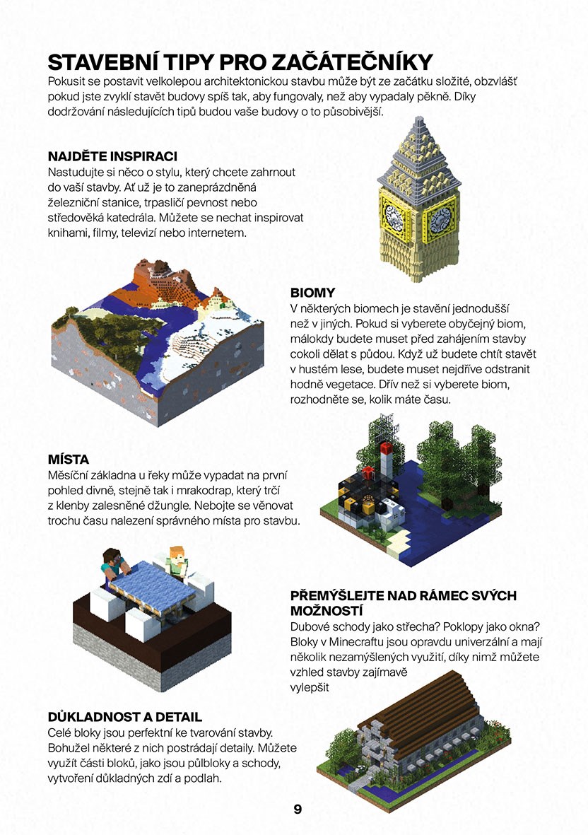 Svět Minecraftu je pestrý a neomezený a rodí se v něm úžasné výtvory, které ale někdy vůbec není jednoduché postavit! Oficiální Průvodce světem osadníka vás naučí vše, co potřebujete vědět a znát při vytváření staveb ještě úžasnějších, než si lze představit. Spolu s doplňujícími informacemi a tipy od expertů z Mojangu jde o ideální příručku k tvoření v Minecraftu.
