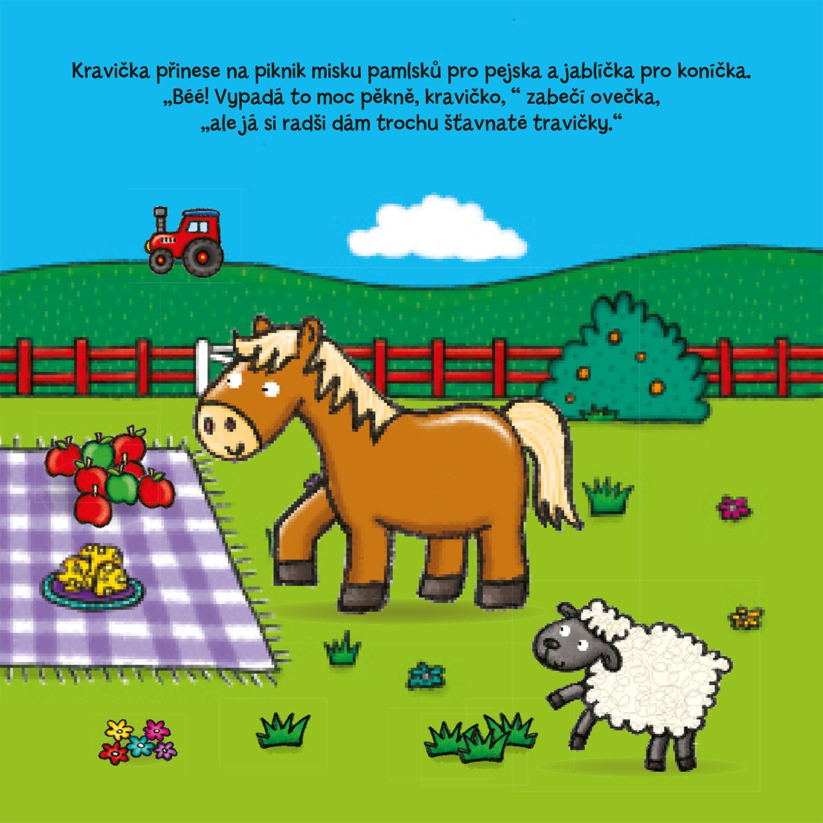 Zvířátka prožívají na statku krásný den. Přečtěte si se svými dětmi toto krásné leporelo pro nejmenší s roztomilými ilustracemi a obálkou s dotykovým prvkem!