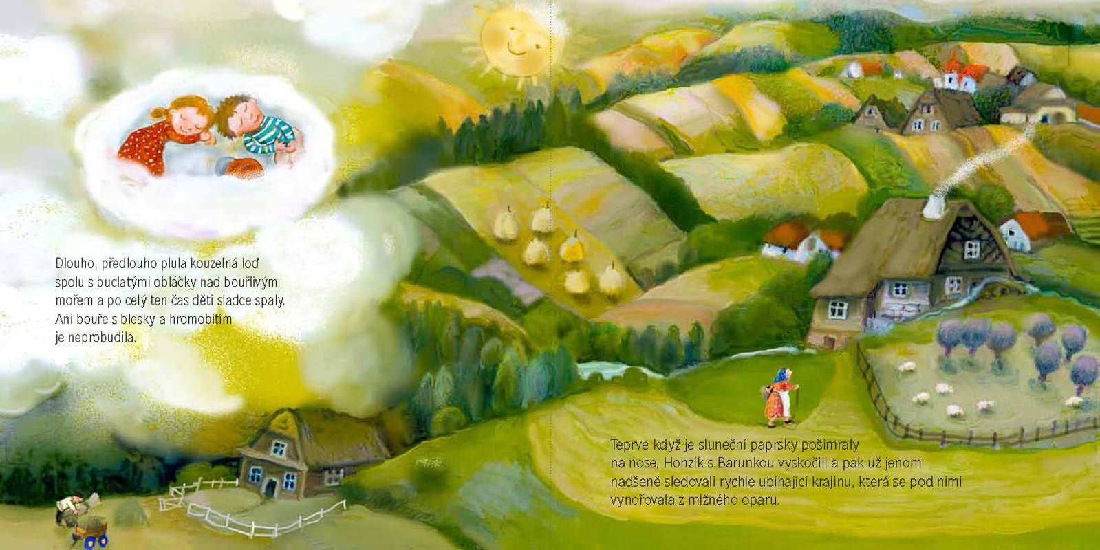 Honzík s Barunkou se touží vrátit do země, kde se narodili, do země, o které jim maminka často a krásně vypráví. A tak se vypraví na cestu. Na svět se dívají z výšky, ale díky kouzelnému kukátku vidí i sebemenší drobnosti. Podívejte se na svět jejich očima v překrásné obrázkové knížce Vlasty Baránkové.