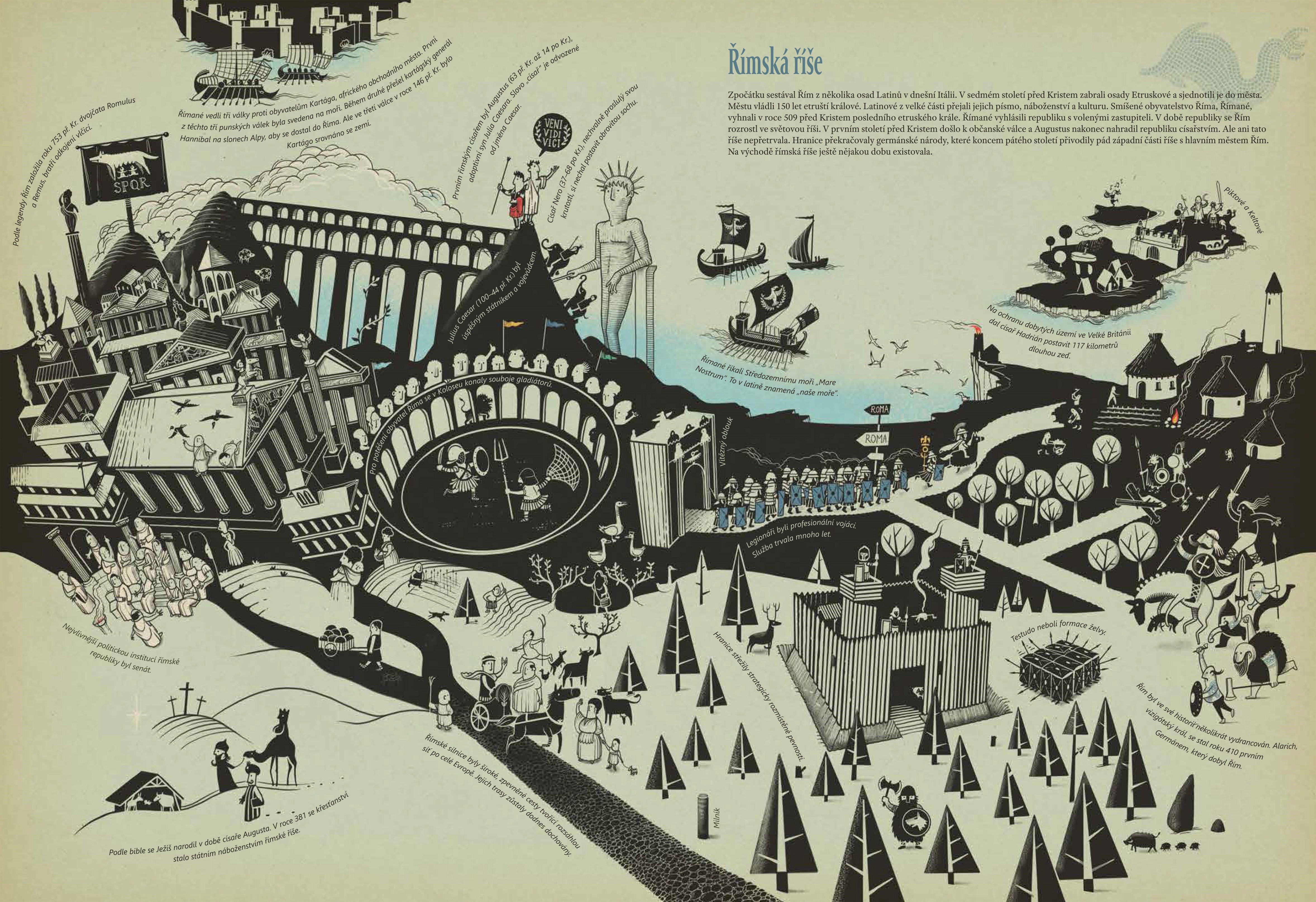 Publikace není jen sumou historických faktů, ale ukazuje především život a kulturu v jednotlivých obdobích. Nevyhýbá se ani drakům, bájným hrdinům a televizním postavám, ani převratným objevům a vynálezům. Každá ze scén zasazuje historické okamžiky do globální perspektivy, prostoru a času.