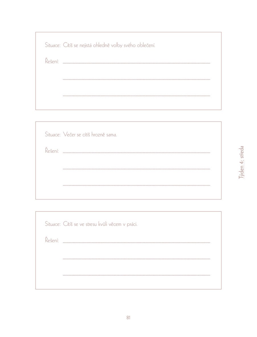 Tento pracovní sešit Ti má pomoci v tom, aby ses jednou provždy vypořádala s trápením se nad vlastní váhou a zúčtovala s nejistotou a přehnanou sebekritikou. Má Tě přivést zpět k vlastní podstatě, k Tobě samé, tady a teď. Naučit Tě, aby sis více užívala života a méně spěchala. A navíc, aby sis sama sebe vážila nehledě na hmotnost či tělesné tvary. Najdeš odvahu a podnikneš tohle dobrodružství?
