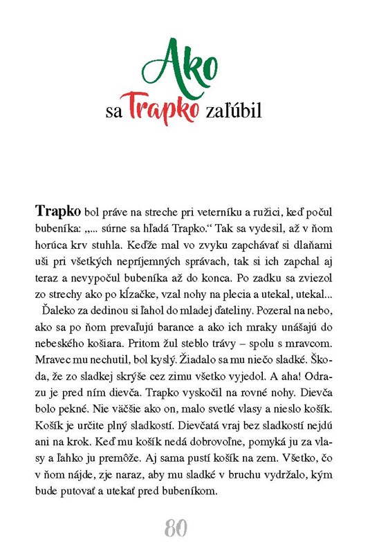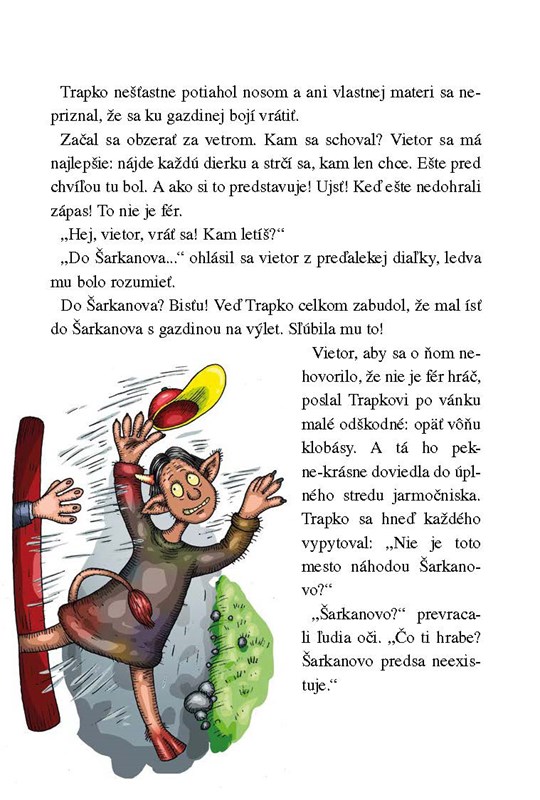 Trapko je čert, ako sa patrí: má srsť, rožky, kopýtka, bojí sa vody a nikomu ani za svet nepomôže. Na svoj čertovský pôvod je patrične hrdý. Len keby tej nepeknej, protivnej ADECEBY nebolo… Keďže Trapko na učenie v škole nie je súci, čertova mať ho pošle hore nad zem, aby sa u chýrečnej gazdinej podučil aspoň gazdovstvu. S Trapkom však šijú všetci čerti, a tak sa – ku gazdovstvu ani nepričuchnúc – vyberie do šíreho sveta. Čo tam zažije, koho tam stretne a aké čertoviny vyvedie, to sa nechajte prekvapiť…