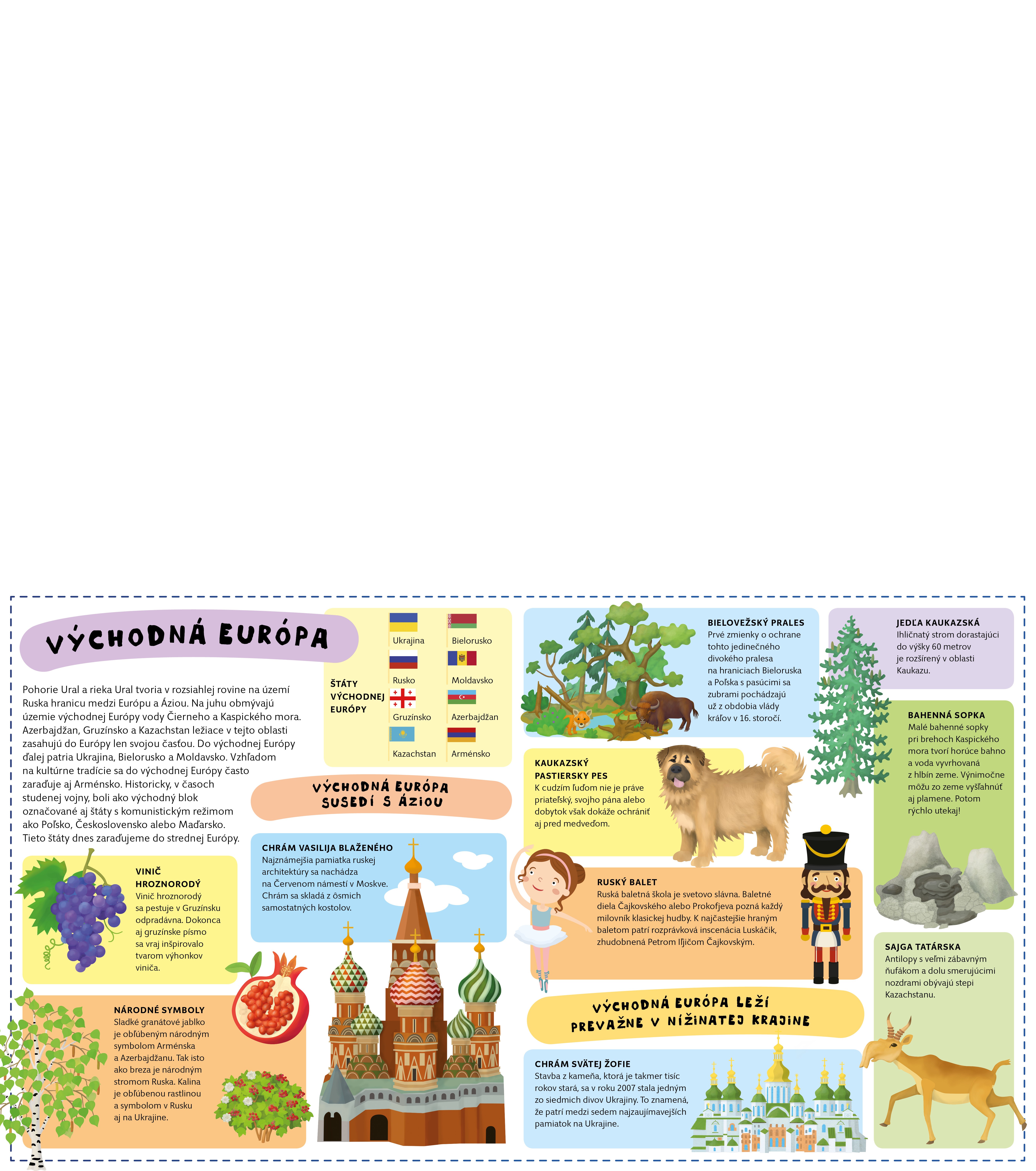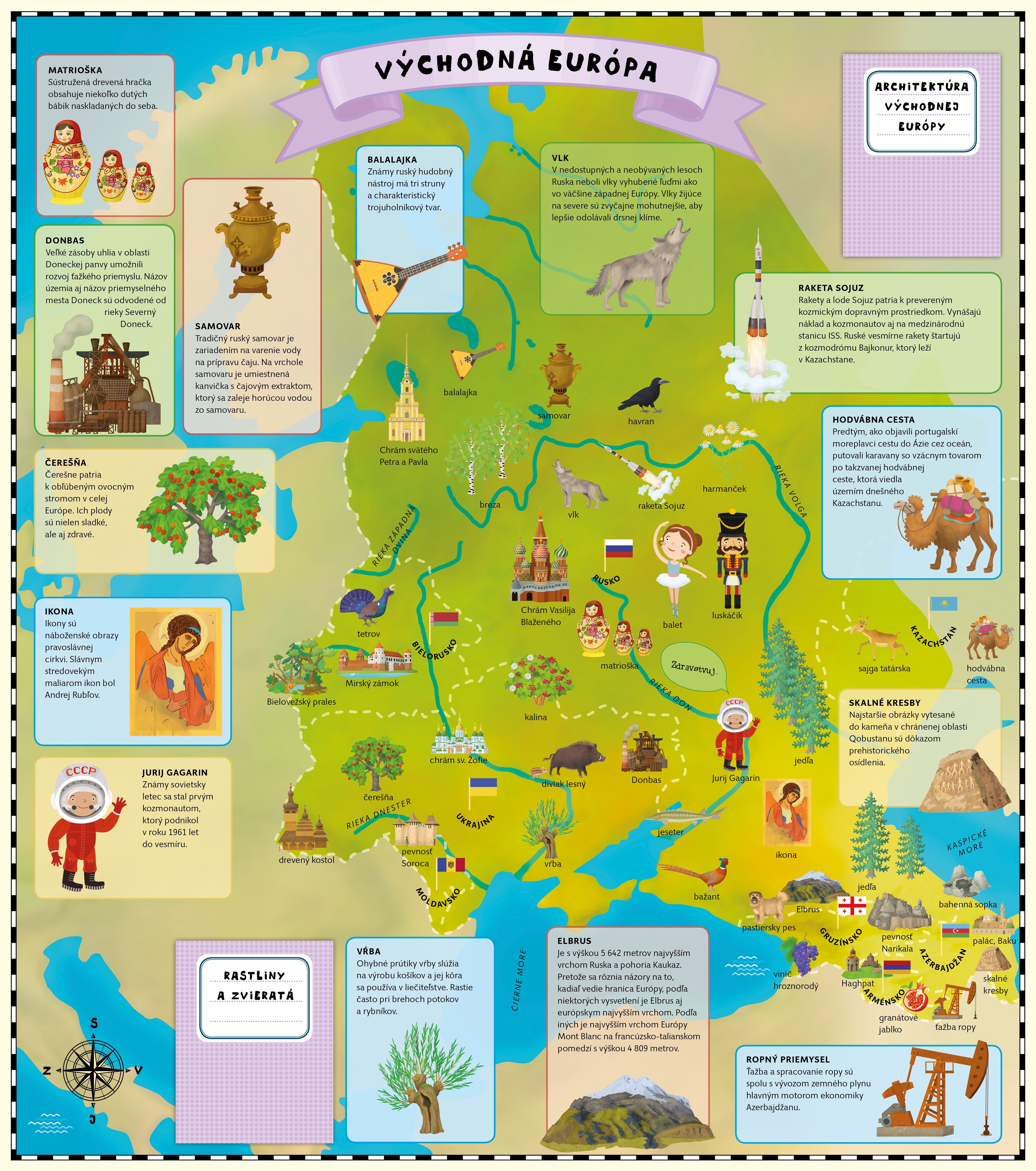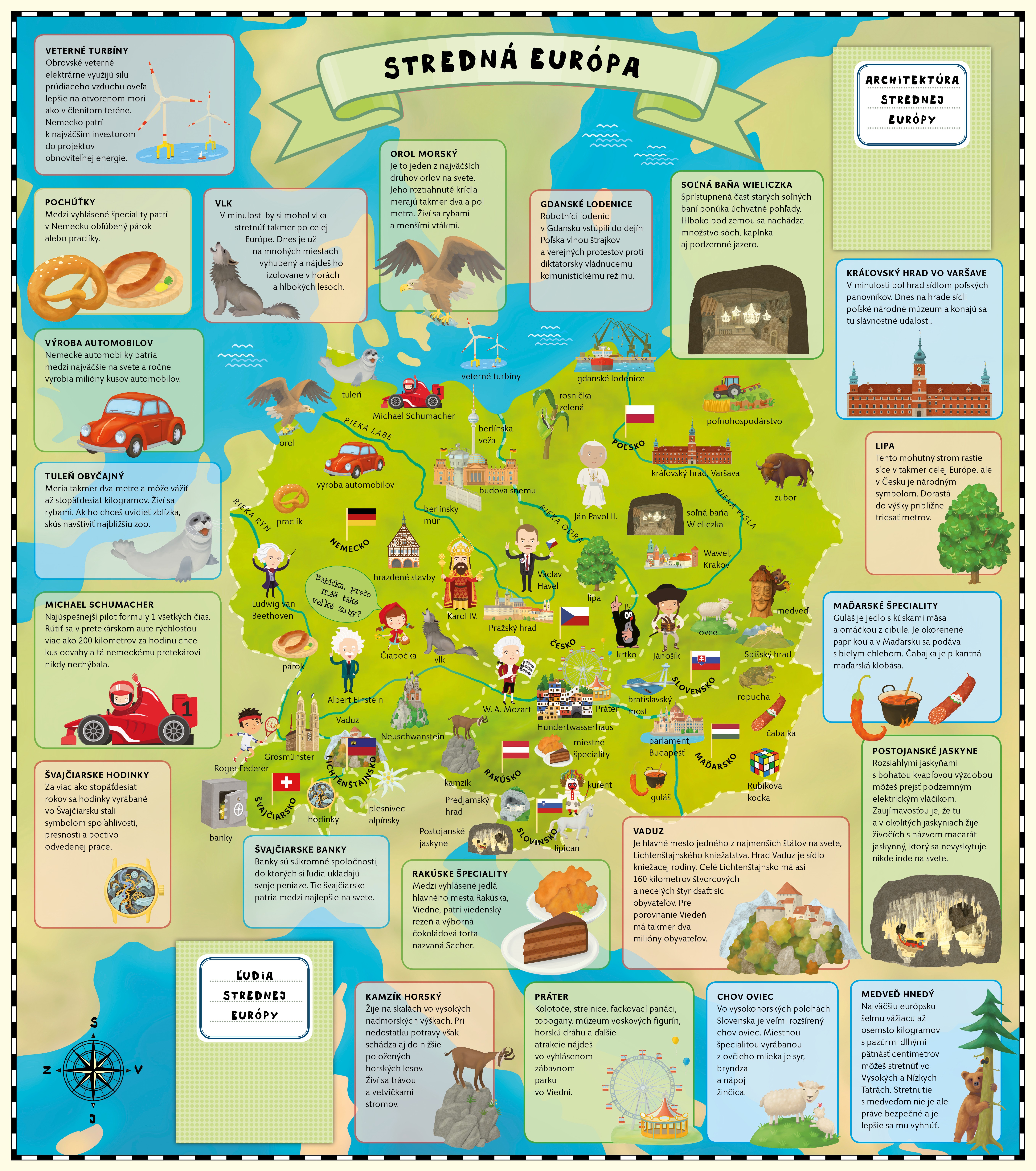 Európa je síce druhým najmenším svetadielom, ale pokiaľ ide o objavovanie zaujímavostí, je priam nevyčerpateľným zdrojom. V Európe žije vyše sedemsto miliónov obyvateľov, ktorí hovoria viac ako dvesto jazykmi a tvoria vyše päťdesiat národov v päťdesiatich rôznych štátoch. To už stojí za objavovanie. Vyber sa s nami na cestu naprieč celou Európou od západu na východ a od severu na juh v šiestich veľkých rozkladacích mapách plných pozoruhodností. O každej krajine sa niečo dozvieš, v každom štáte chvíľu zostaneš. Zoznámiš sa s európskymi osobnosťami histórie aj súčasnosti, spoznáš najzaujímavejšie európske stavby a prečítaš si o zástupcoch živočíchov a rastlín z jednotlivých kútov Európy. Nemusíš si ani baliť kufor, stačí sa len pohodlne usadiť a veľké putovanie po Európe môže hneď začať.