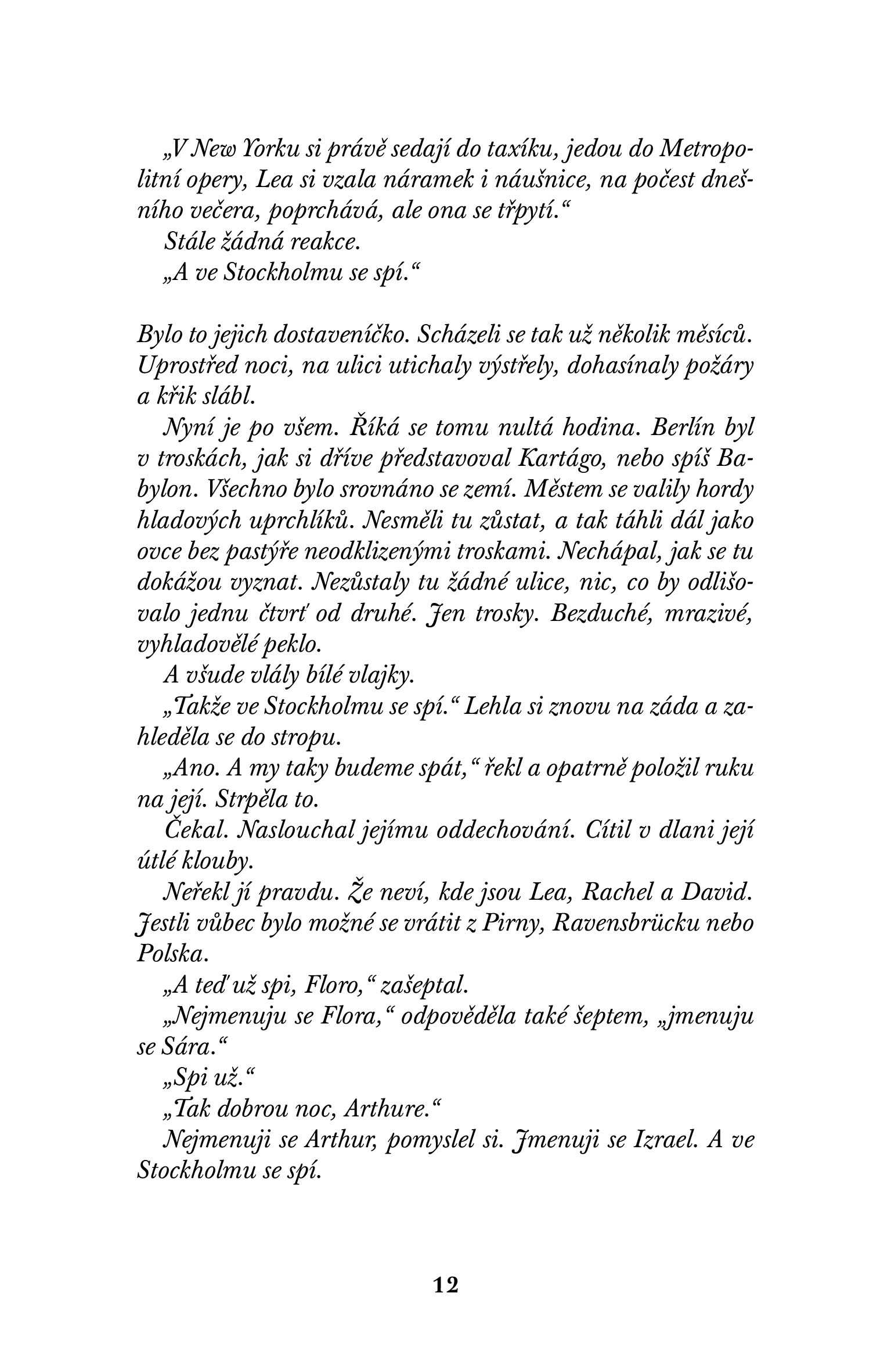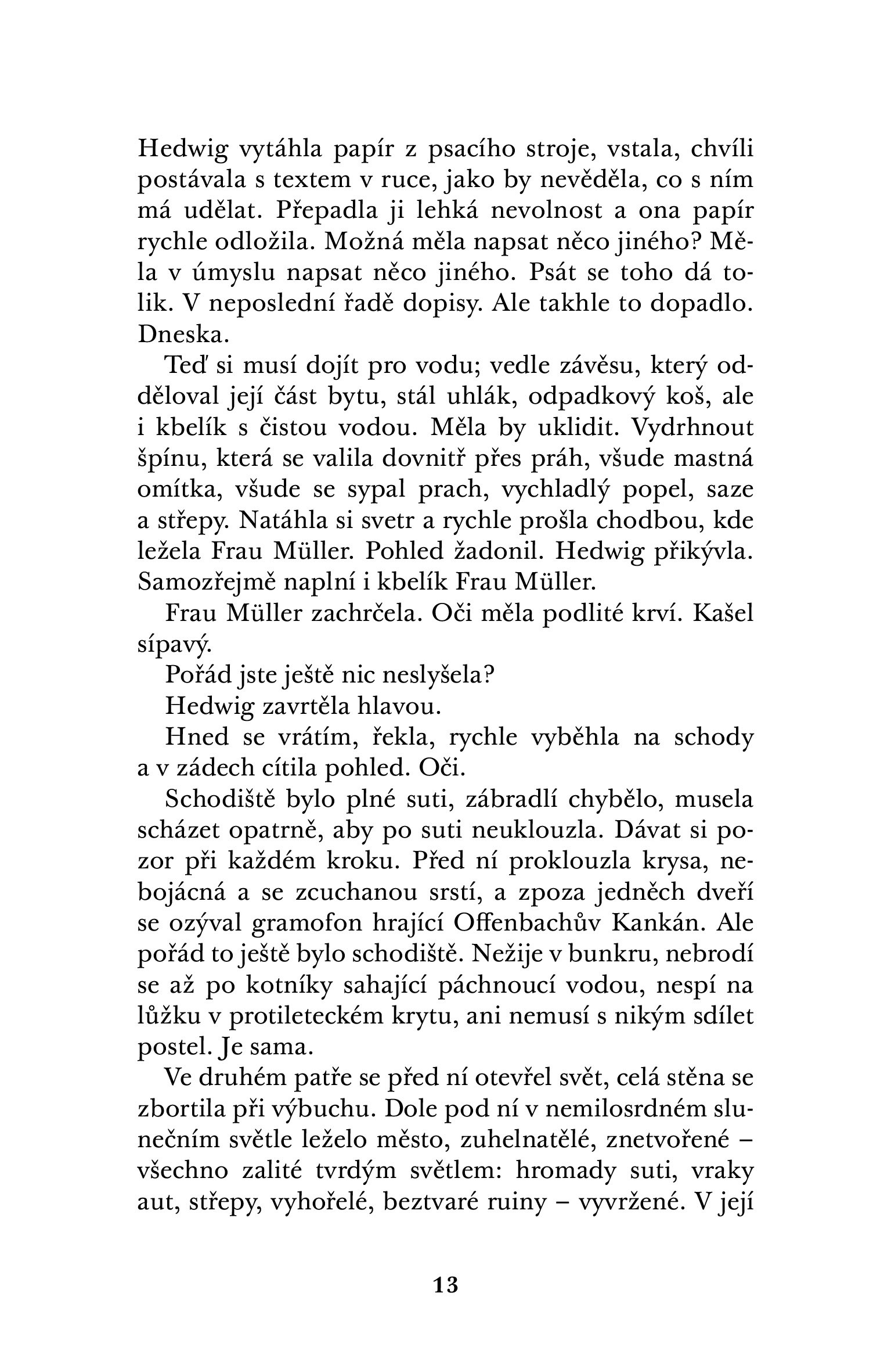 Nultá hodina, Stunde Null, je termín, který se v Německu používá pro označení období bezprostředně po druhé světové válce, období, kdy celá země ležela v troskách, na nichž lidé zatížení těžkým břemenem viny museli vystavět nový svět. Tento román vyrůstá z představy ženy, jejíž svět se náhle zhroutil, ženy v její nulté hodině – který směrem se vydá?