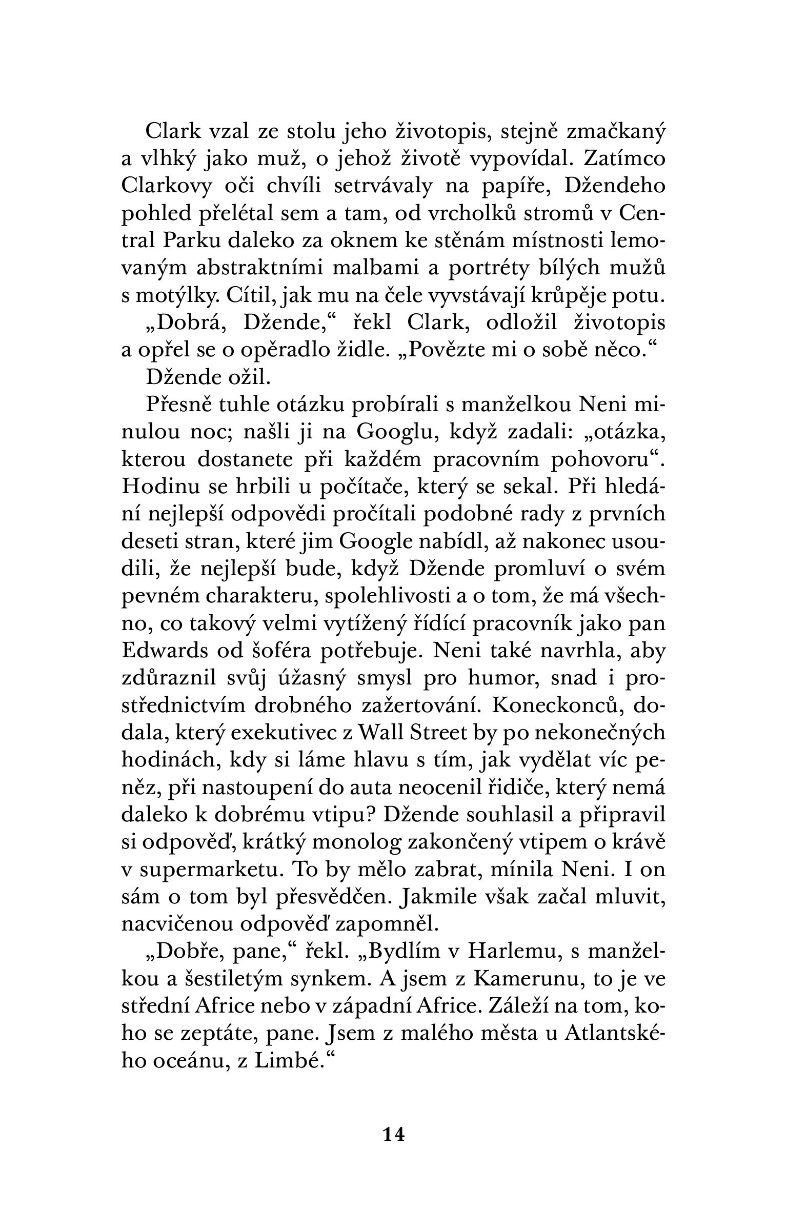 Co všechno člověk musí obětovat, když chce zajistit své rodině lepší budoucnost a život v blahobytu? Džende Džonga emigruje z Kameru do New Yorku, aby zde začal žít svůj amerických sen. Po několika měsících téměř otrocké práce se na něj usměje štěstí a získá práci snů – stane se z něj osobní řidič rodiny Clarka Ewardse, vysoce postaveného manažera v bance Lehman Brothers. Džende má poprvé v životě dobře placenou práci a dokáže zabezpečit nejen svou rodinu, ale i podporovat příbuzné v Kamerunu. Jeho žena začne pomáhat v Clarkově domácnosti a získá si důvěru jeho manželky. Zdá se, že po letech strádání a tvrdé práce čeká Džendeho rodinu světlá budoucnost. Jeho sny se však začnou rozplývat, když na povrch vypluje pravda o finančních machinacích banky Lehman Brothers a když se Clarkova, na povrch dokonalá rodina, zhroutí pod tíhou utajovaných skutečností a v důsledku nefungujících rodinných vztahů. Tehdy se naplno ukáže, že Džendeho život v emigraci stojí na vratkých nohách a on musí učinit jedno ze svých nejtěžších životních rozhodnutí.