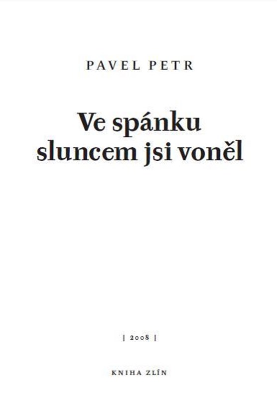 Kniha básníka Pavla Petra – Ve spánku sluncem jsi voněl – je v pořadí třetí autorovou elegií – rozsáhlou skladbou navazující na knihy S tebou tmavé louky roztroušených ostrovů (Petrov) Řeckořím (Větrné mlýny). S těmito knihami je ve spojitosti, jak stejnou grafickou úpravou, tak vnitřním uzpůsobením samotného textu. Uzavírá se tak básnická trilogie jakoby obrácená k antice, k hledání lásky, vymezování vlastního prostoru v rytmu slov. Básníkova gesta – jak píše Jan Štolba v eseji – Snad jenom jemná chůze nejtěžším terénem o básníkovi – Pavel Petr si svým neobvyklým (v lecčem jistě i riskantním) stylem vytváří rozvolněný prostor, v němž by posléze mohlo zaznít cokoli. Náznak, stejně jako přesné spojení, reálný útržek, nesouvislá otázka, bonmot o Bohu či zas milostné zašeptání, dychtivé, vzdorné či jen jímavé pozorností, jíž se upíná ke svému objektu. Vše je v tomto prostoru nezadržitelně fragmentarizováno, současně však kdesi vespod je emocionálně stmelováno do nálehavě celistvého sdělení.