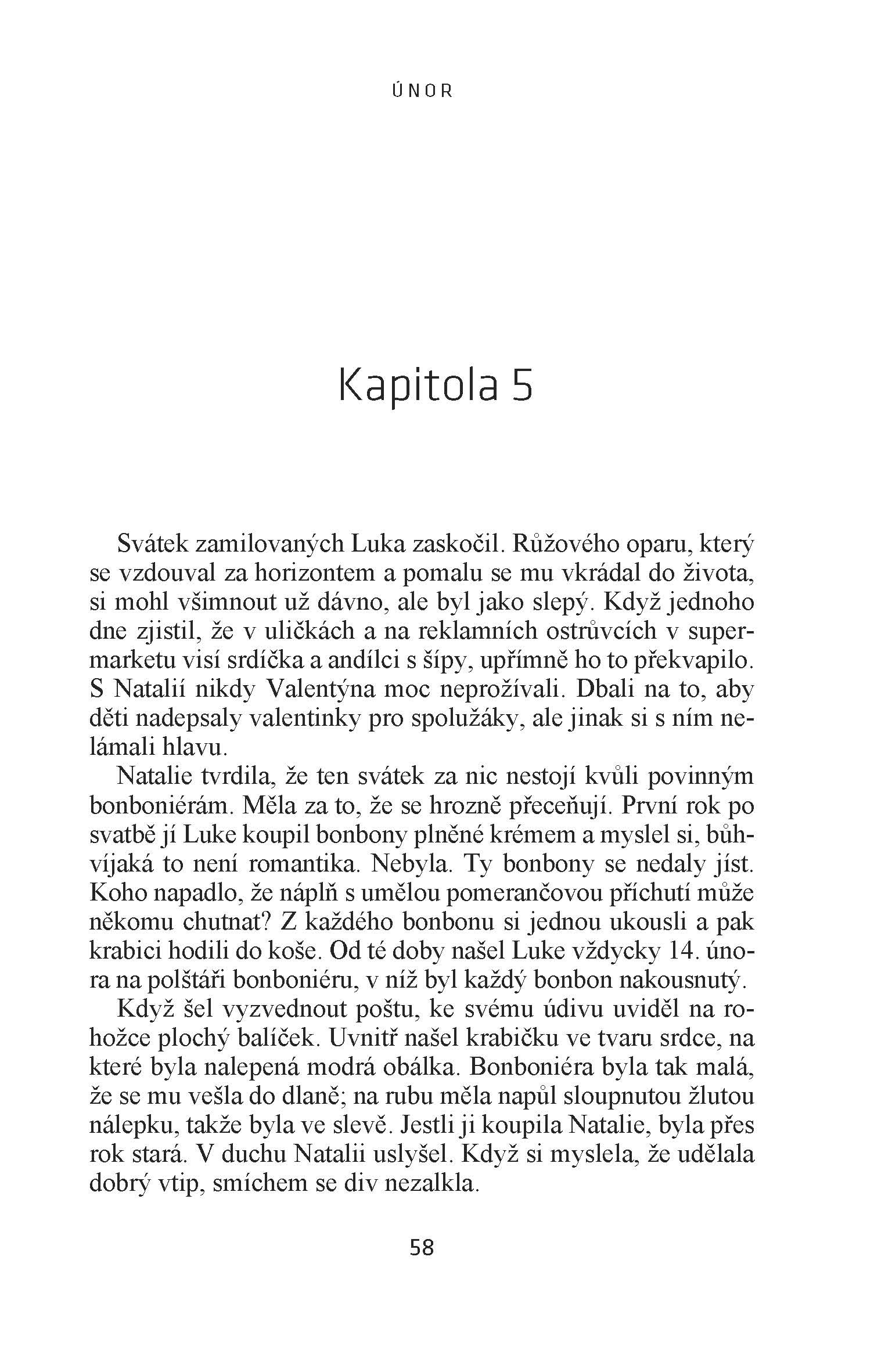 Luke si připadá v koncích. Nejenže se vyrovnává se ztrátou milované manželky Natalie, ale také se musí postarat o své tři děti. Pak mu jednoho dne začnou chodit dopisy v modré obálce, jež Natalie napsala ještě před svou smrtí a v nichž mu radí, jak má dál žít. Její nejlepší kamarádka Annie, která Lukovi pomáhá s dětmi, se obává, že jejich čtení jen prodlužuje zármutek, Luke se však nedokáže odtrhnout. A pak narazí na tajemství, které možná obrátí celý jeho dosavadní život v prach – lhala mu Natalie o jejich dětech? A kdo je ten neznámý člověk, jenž dopisy posílá?