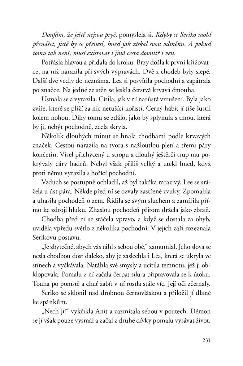 Lea už ví, že její nitro ovládá temnota. Za pomoci své sestry Sáry a strážce Lukáše se s ní snaží bojovat. Když jsou ale Sára s Lukášem vysláni na misi na znovuobjevený Salemon, zůstává na to sama. Útočiště nachází u tajemného mladíka, který má za úkol ji hlídat. Přesto se ale stále propadá hlouběji do temnoty a mění se.