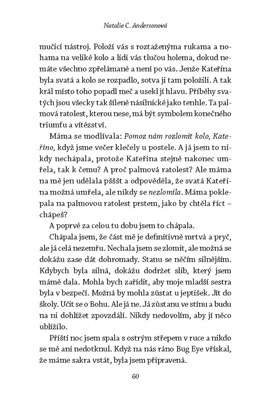 Je tu veľmi pekne a zároveň jemne zachytený drsný život v oblastiach, kde neutícha vojna a násilnosti sú na dennom poriadku. Ženy sú len veci a nemajú žiadne práva. Vojaci si ich berú ako sa im zachce a ak sa nejakým zázrakom vrátia domov, sú do konca života poznačené. Kniha si ma získala už len tým, že autorka sa nebála poukázať aj na takéto problémy a naozaj ich vedela podať citlivo a zároveň sa dokázala vyhnúť prehnanej dramatickosti.