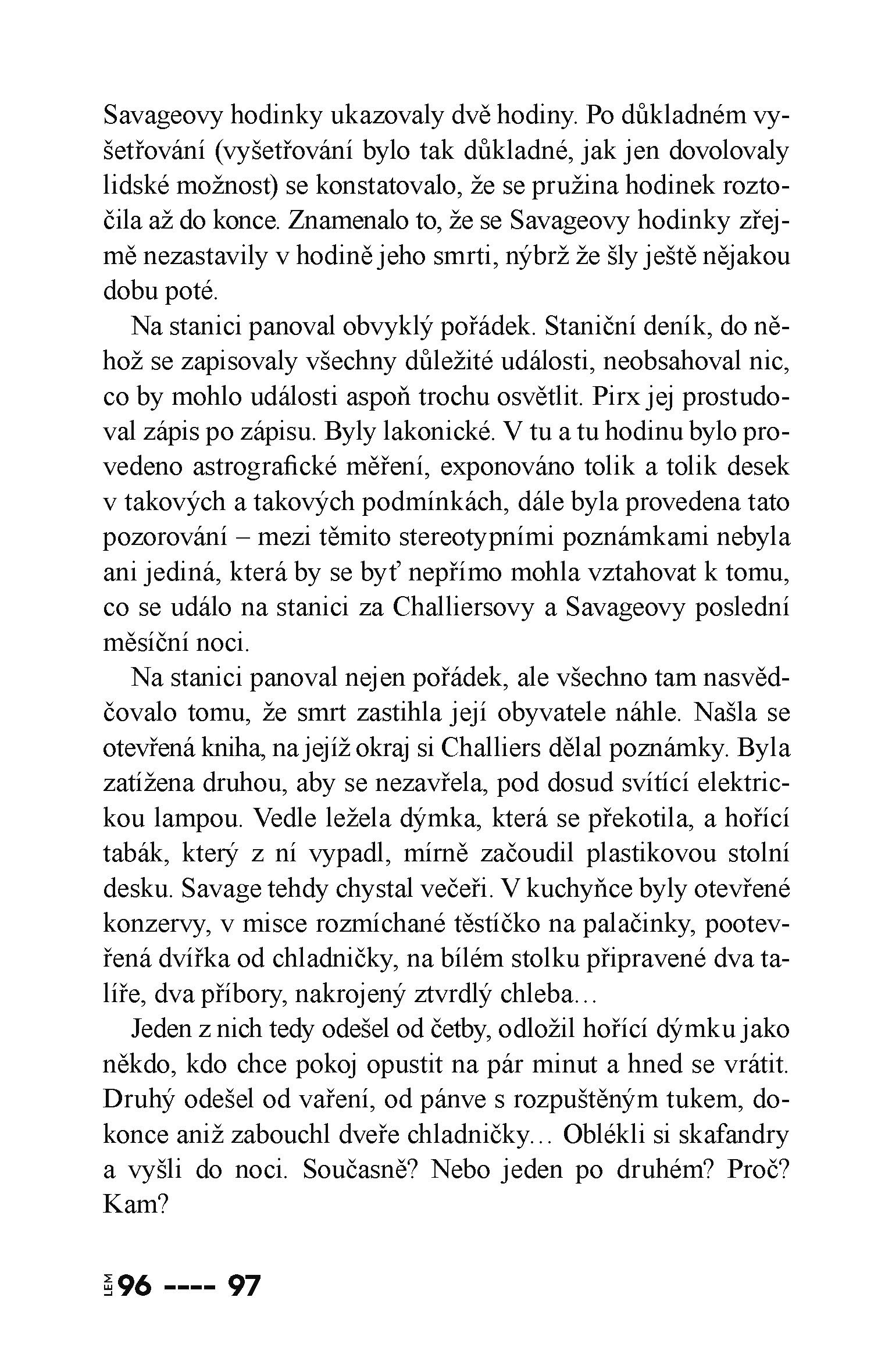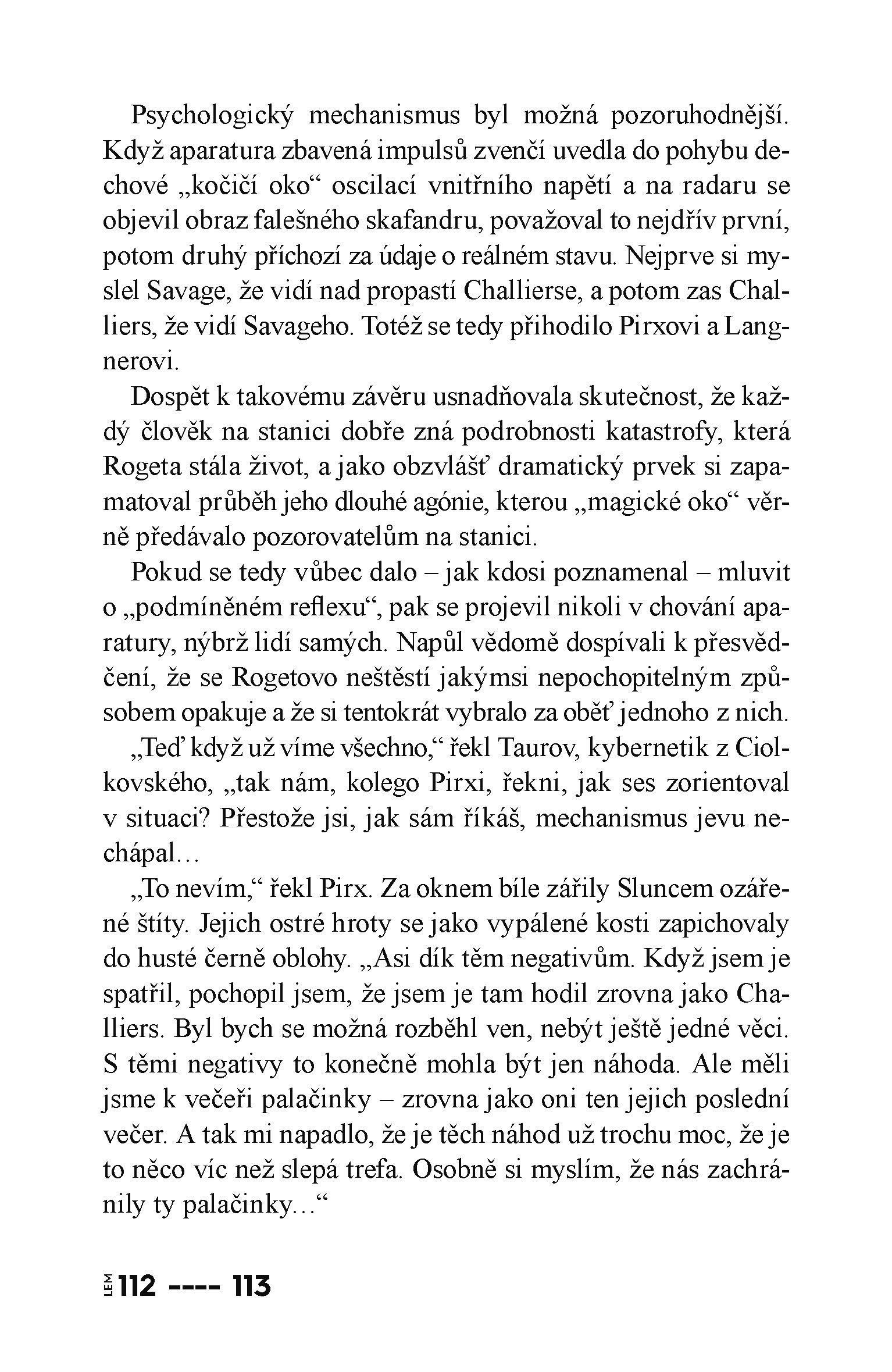 „I po padesáti osmi letech, které uplynuly od doby, kdy Stanisław Lem napsal první povídku s Pirxem, je pro nás jeho hrdina vzorem, jak se chovat k automatům a robotům, jež právě začínají pronikat do našich životů. Pirxovy příběhy tak paradoxně teprve po půl století od vzniku nabývají toho pravého významu a jejich hrdina je pro nás čím dál tím směrodatnějším rádcem.“ Ve vesmírném pilotu Pirxovi stvořil světoznámý spisovatel Stanisław Lem, autor kultovních románů jako Solaris, Marťan nebo Nepřemožitelný, jednu ze svých nejzajímavějších postav: snílka toužícího po kosmických objevech, který si díky svému nekonvenčnímu myšlení dokáže poradit v konfrontacích se stroji i lidmi. V devíti povídkách se tak Pirx musí vypořádat například s vesmírnou lodí, jejíž havárie by způsobila katastrofu nesmírných rozměrů, nebo s robotem, který se změnil v nelítostného zabijáka. Vždy jej přitom charakterizuje bytostně lidský náhled na svět, pochopení a víra v člověka i ve stroje. Příběhy pilota Pirxe zahajují řadu nově vydávaných Lemových děl v nakladatelství Plus.