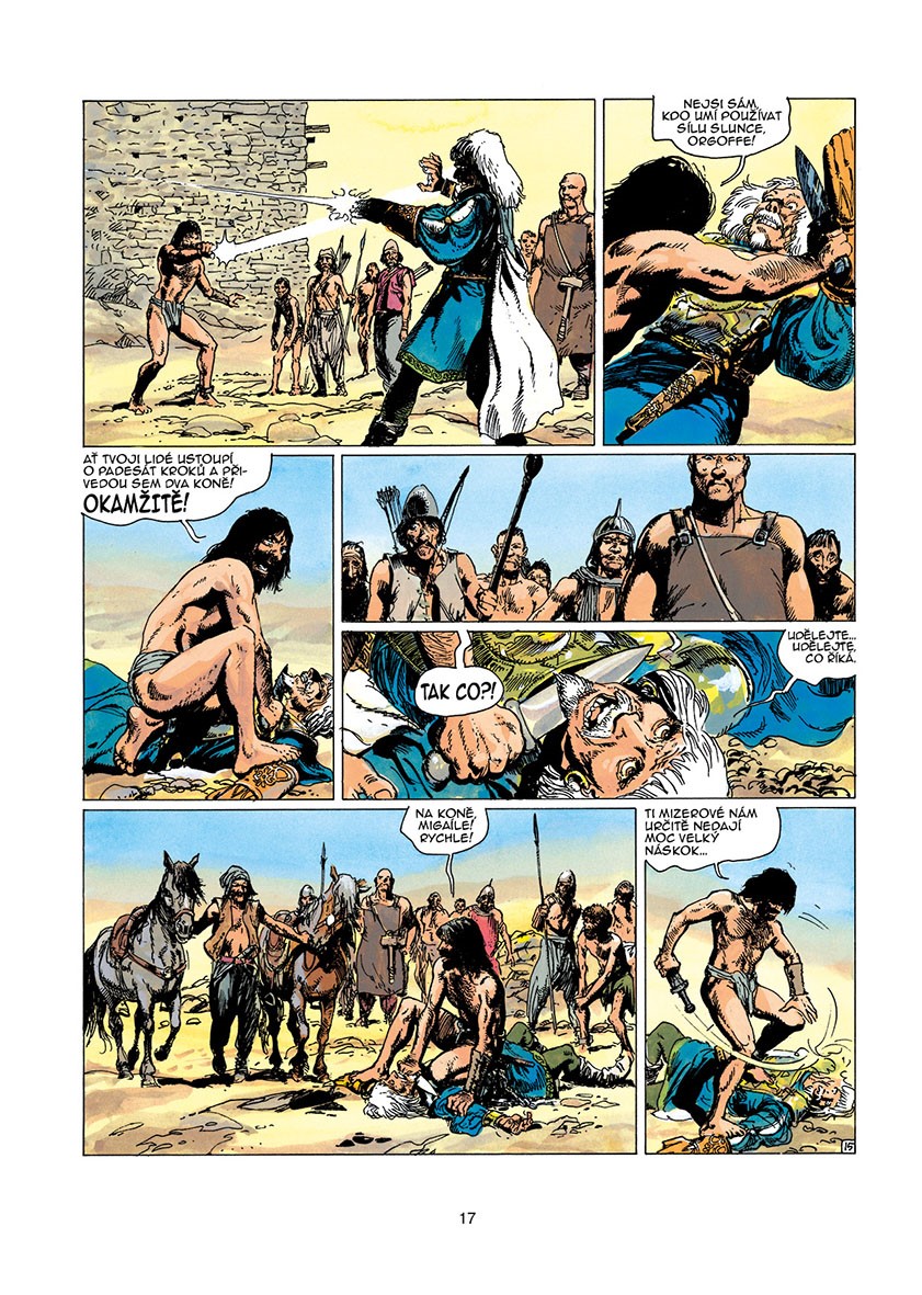 Osmnáctý díl kultovní fantasy série je tentokrát zasazen do světa, který se podobá rané středověké Evropě. Znovu se v něm setkáváme s bojovnou Kriss z Valnoru, která jde neústupně za svým cílem, i když by se z předchozího dílu Mezi zemí a světlem dalo čekat, že už její putování celou sérií skončilo. Do hry se také vrací Ogotajova proslulá zbraň známá z Města ztraceného boha - sluneční meč -, tentokrát však v rukou omezeného lokálního tyrana. Postaví se mu sice nejen skupina vzbouřenců, ale i poutník Thorgal, který se dobrovolně vzdal života s rodinou, jenže bude to stačit na násilníka, který vládne zbraní, jež nepochází z tohoto světa?