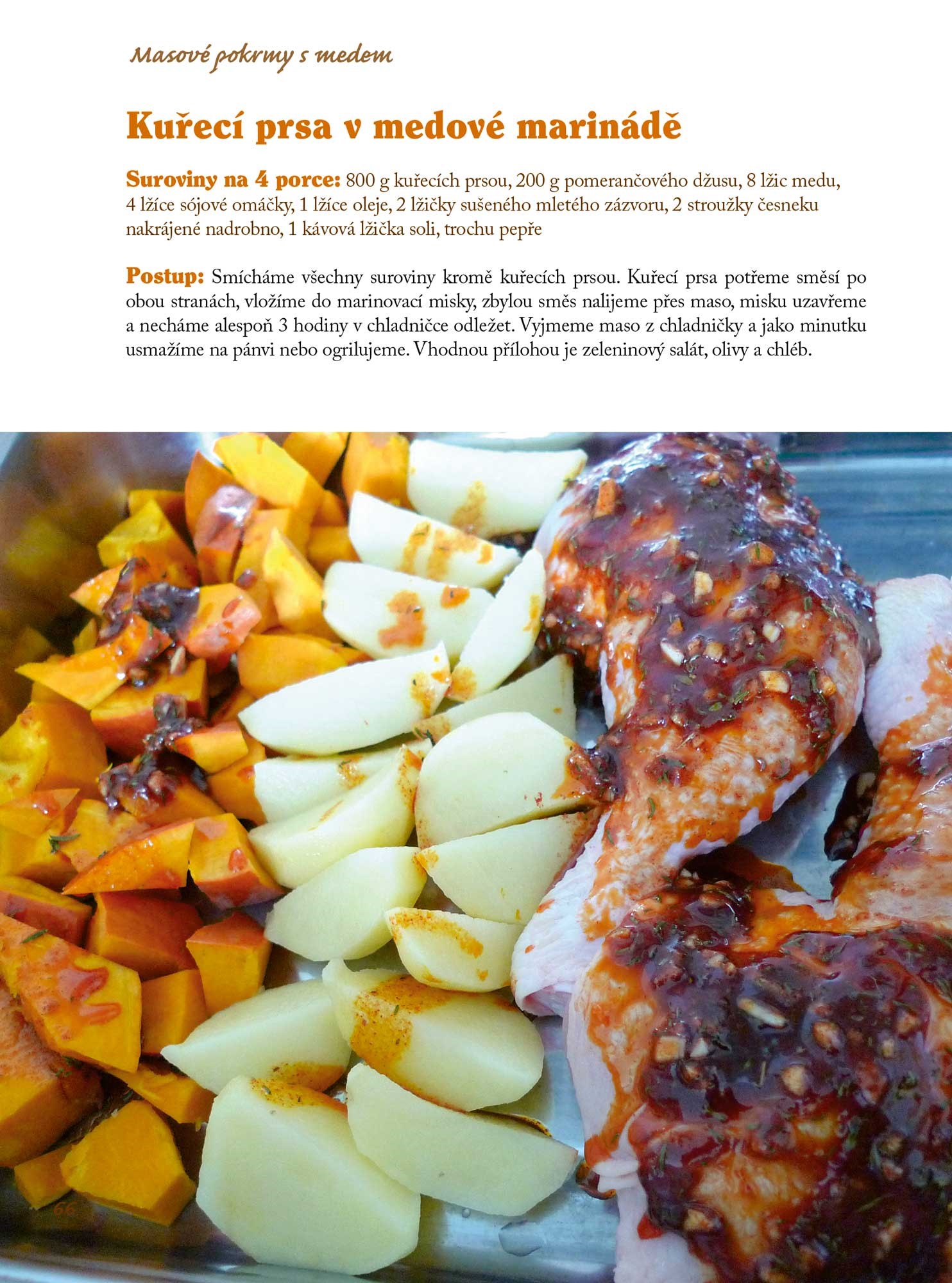 Ochucené medy, perníčky, zmrzlliny, džemy, želé, likéry, karamelky a další cukrovinky, dezerty, moučníky, oříškové tyčinky a flapjacky, vánoční cukroví, polévky, masové i bezmasé pokrmy, šunka, pomazánky, omáčky, saláty a salátové zálivky, nápoje... Vše s medem!