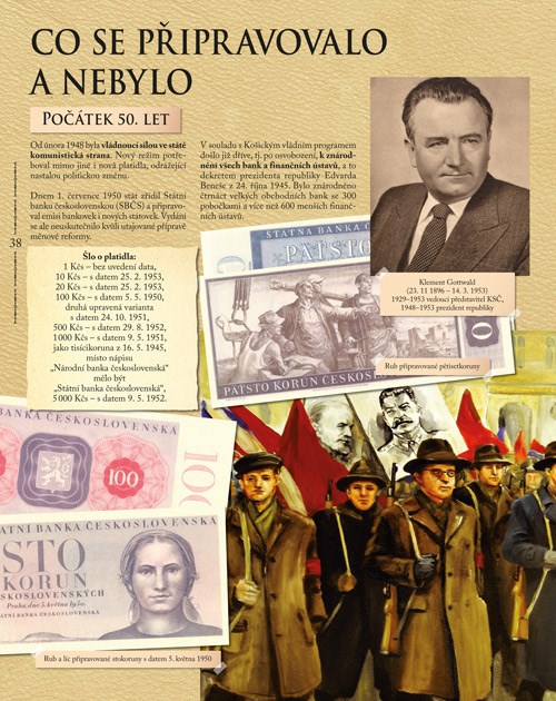 Socialistické bankovky zrcadlí ideologii a budovatelský optimismus tehdejší doby – a i ony tvoří nedílnou součást naší historie. Kniha postupuje krok za krokem až po současnost, kdy stojíme před zavedením eura.