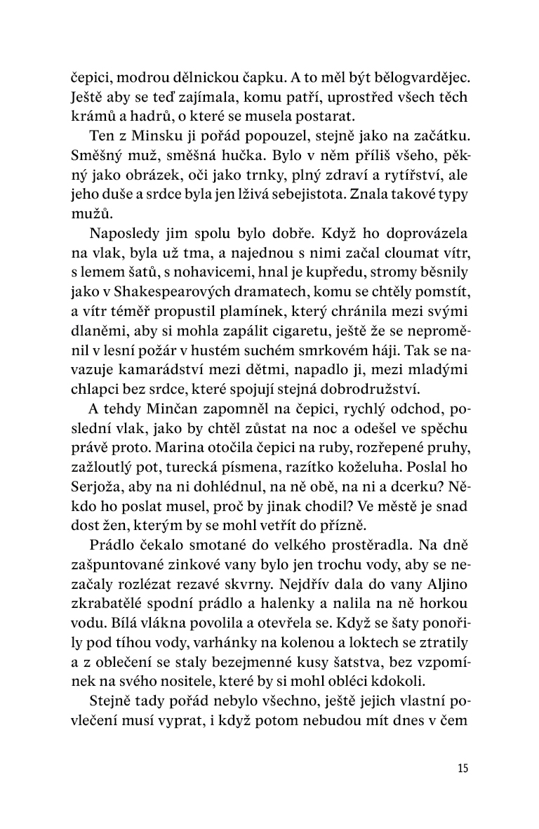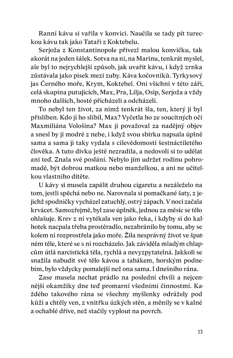 Román zachycuje životní příběh ruské básnířky Mariny Cvetajevové a její dcery Ariadny Efronové. Rozsahem i tématem ambiciózní dílo, za které autorka v roce 2013 obdržela prestižní literární cenu Finlandia, představuje úspěšný pokus o skloubení monumentální historické fresky, věrně mapující události po říjnové revoluci v roce 1917, s osobním příběhem jedné z největších osobností ruské literatury 20. století. Kniha je prokládána Adriadninými a Marininými dopisy a texty, které románu dodávají hlubší rozměr. Cvetajevová byla osobitou kronikářkou své doby a v často experimentálních verších dokázala obsáhnout hloubku lidského života a údělu. Riikka Pelo od ní v tomto ohledu přebírá pomyslné žezlo: spíše než záznam o životě ruské spisovatelky jako někdejší celebrity a později vyděděnkyně moskevských uměleckých kruhů čtenáři předkládá silný, dramatický příběh člověka semletého historickými okolnostmi a monstrózní ideologickou mašinerií Sovětského svazu.