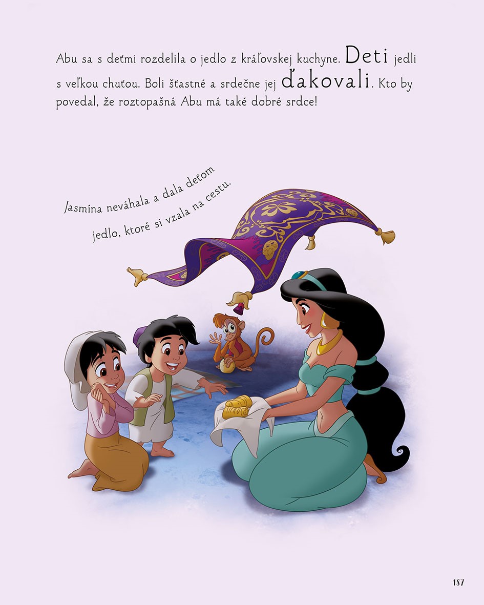 Princezné sa nikdy nenudia! Popoluška šije krásne šaty, Ariel stretne veľrybiu rodinku, Snehulienka sa zoznámi s tromi obrami, Bella si nájde kamarátku vynálezkyňu, Tiana je vystavená skúške priateľstva, Rapunzel sa spriatelí s malým chameleónom a Jasmína s opičkou Abu urobia radosť chudobným deťom z mesta. Príbehy v knihe sú plné dobrodružstiev, priateľstva a splnených snov. Vďaka krátkemu textu sú ideálnym čítaním pred spaním a tiež zárukou príjemne stráveného času rodičov či starých rodičov s deťmi.