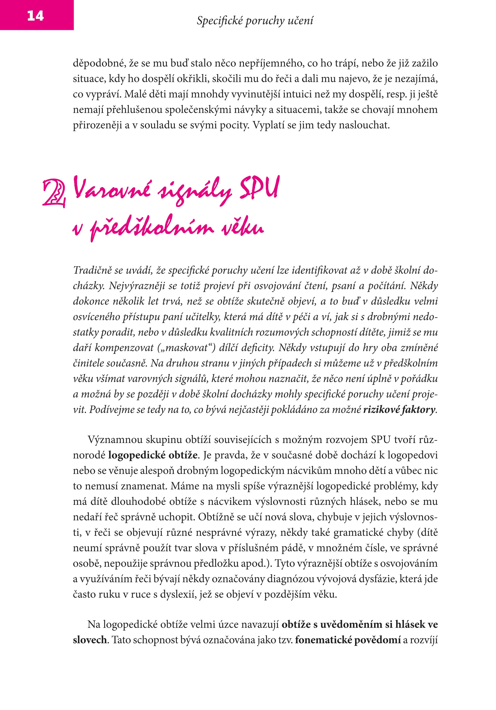 Kapitoly doplňují případové studie a odkazy na konkrétní pracovní listy či pomůcky, které při práci s dětmi a dospívajícími se SPU můžete využít.
