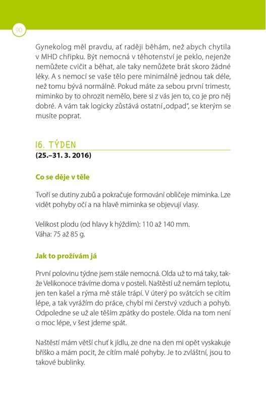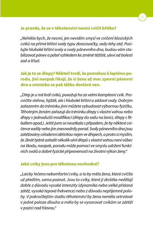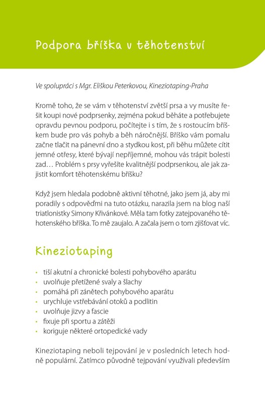 Kniha je částečně autorčiným deníkem z těhotenství, ale zároveň odbornou příručkou pro ženy, které by chtěly zůstat i v těhotenství aktivní.