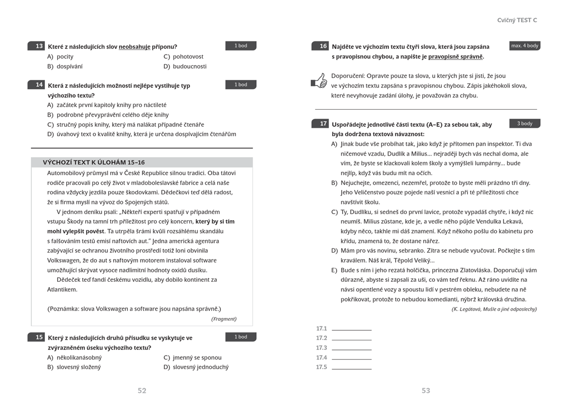 Publikace obsahuje 11 cvičných testů z českého jazyka a literatury. Jsou sestaveny tak, aby žák získ...
