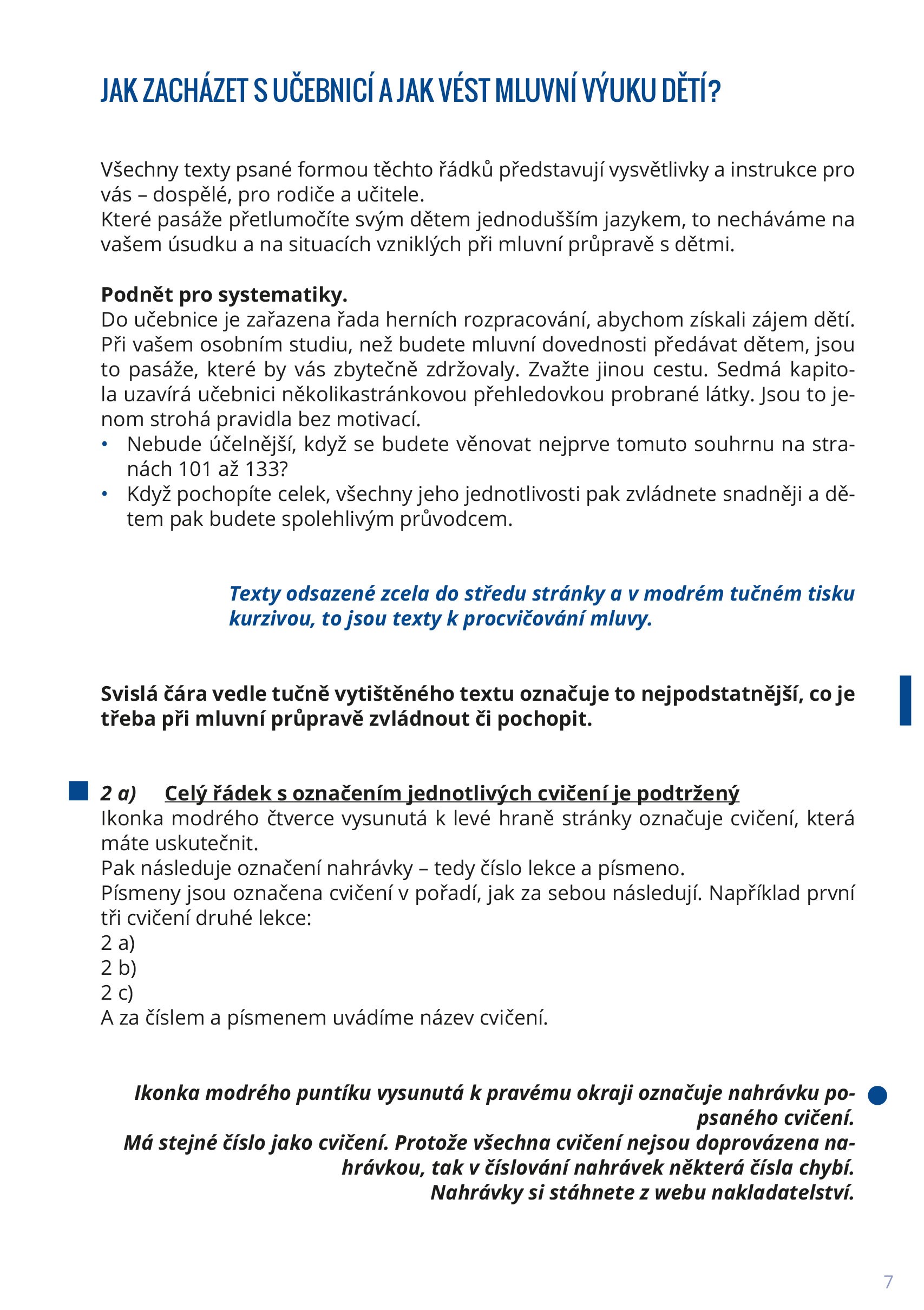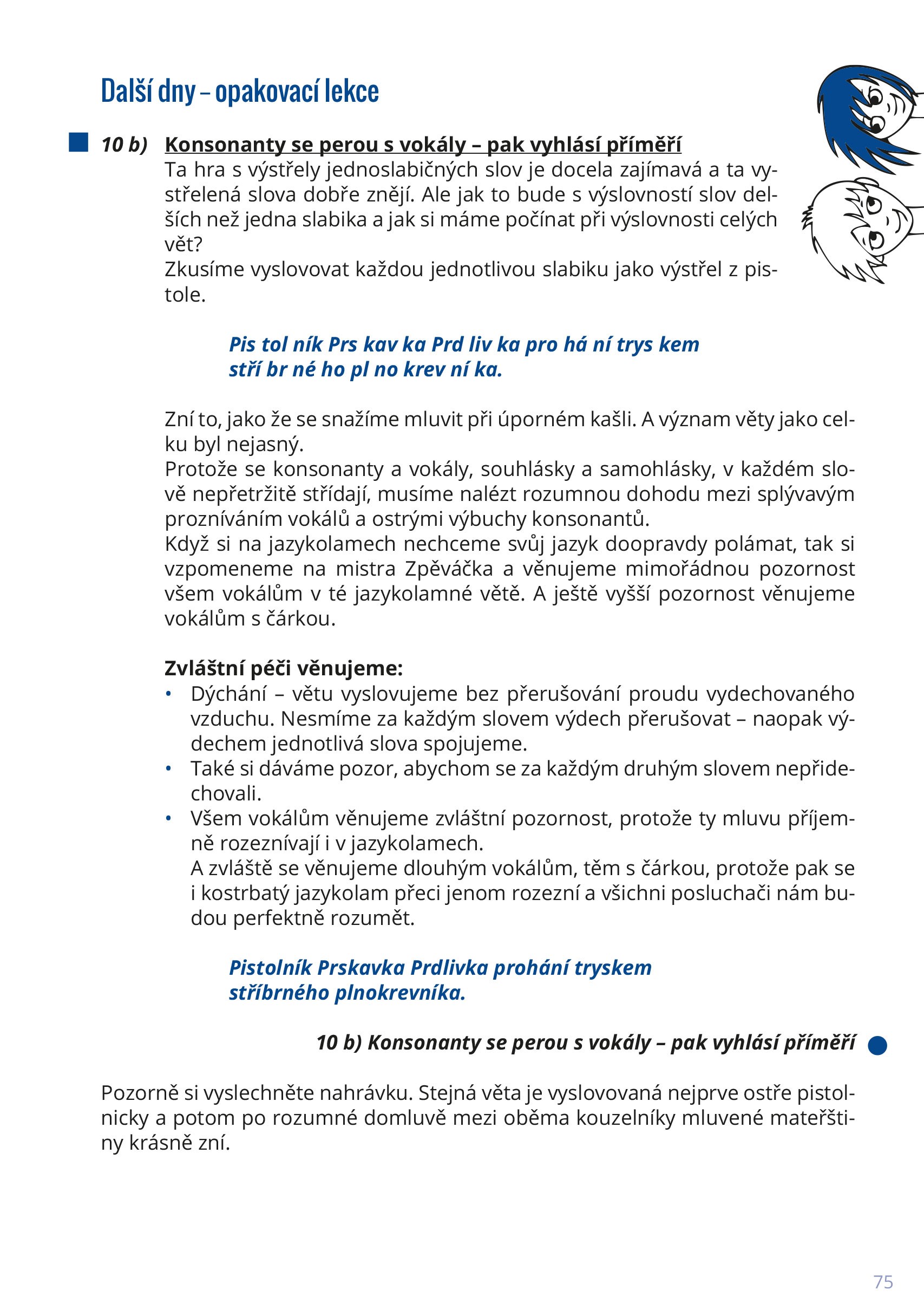 Předkládáme metodické postupy, které poslouží nejen dětem, ale i vám, kteří potřebujete ve své profesi zkultivovat mluvní projev. Pak budete svoje myšlenky předávat účinněji. Stačí, když se lehce přenesete přes některé herní motivace určené dětem, a mluvní cvičení zvýší vaši kulturu řeči.